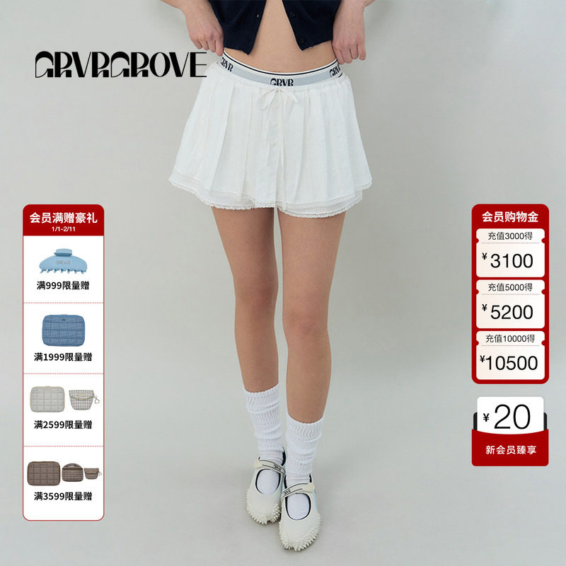 GROVE官方旗舰店2025SS春夏新款百褶梭织短裙裤女韩系风GS5SK16M