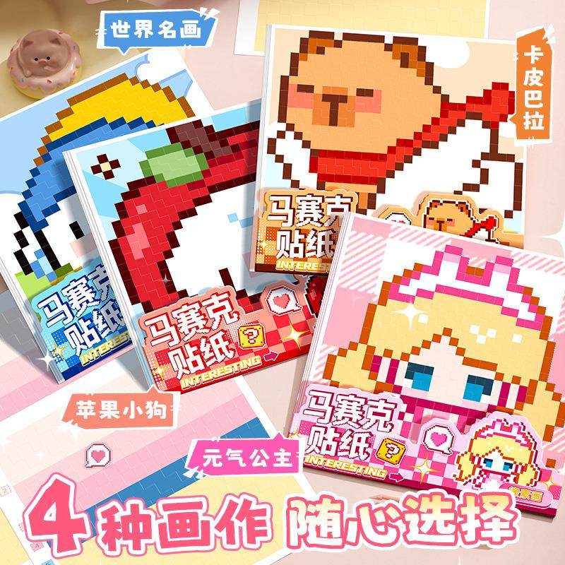 咔巴熊马赛克拼豆贴纸本女孩儿童可爱手工diy解压免裁剪像素贴画