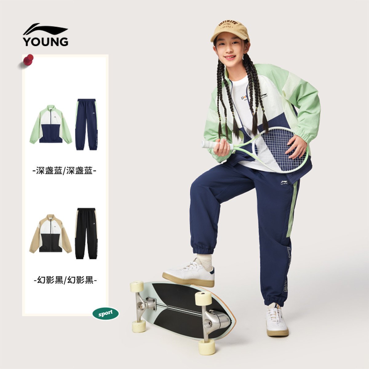 李宁童装套装男女大童新款潮流运动生活系列宽松秋冬休闲梭织童装