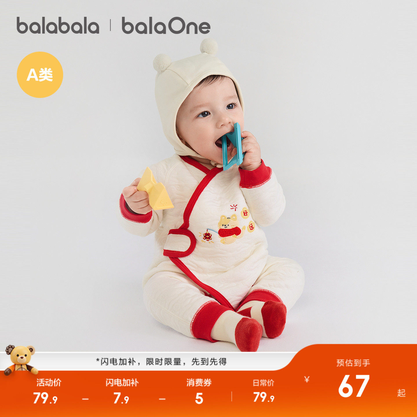 巴拉巴拉婴儿连体衣新生儿宝宝衣服满月爬服2025新款冬夹棉加厚萌