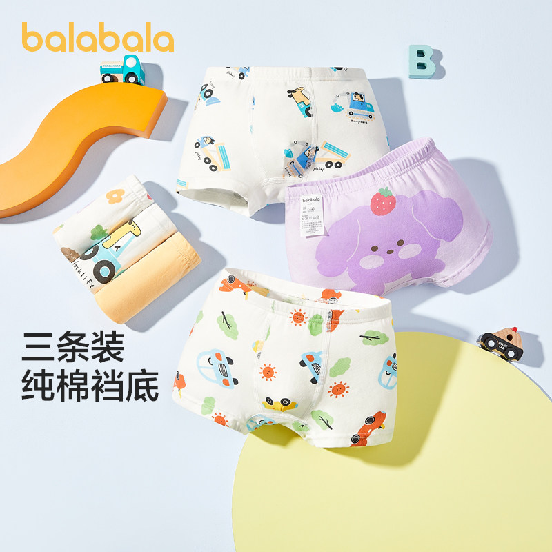 【balaOne】巴拉巴拉儿童内裤棉男童不夹pp抗菌裆四角短裤三条装