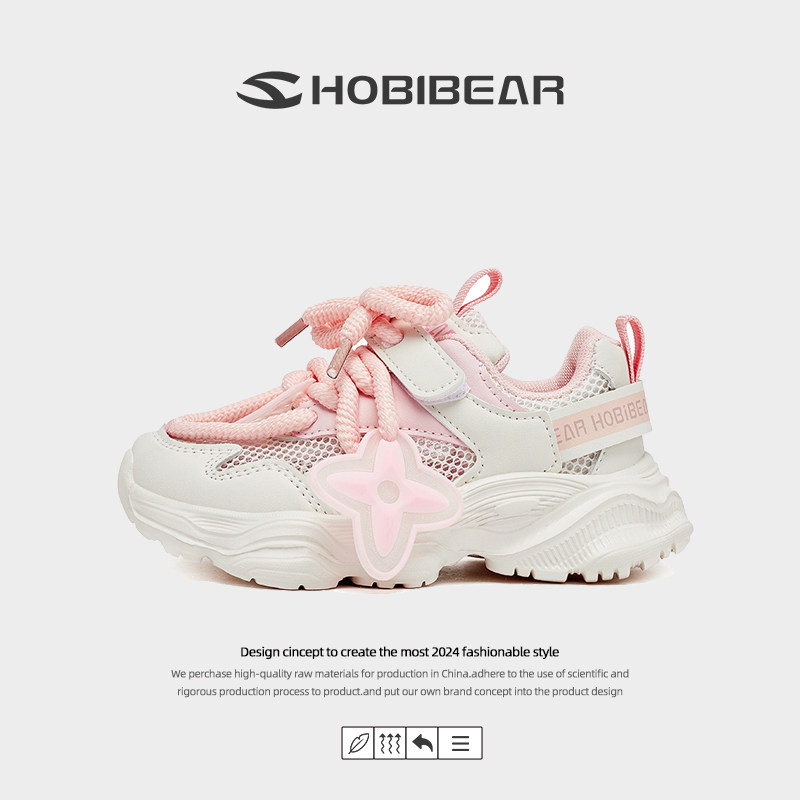 哈比熊童鞋女童网面运动鞋儿童透气单网鞋2025夏季新款男童老爹鞋