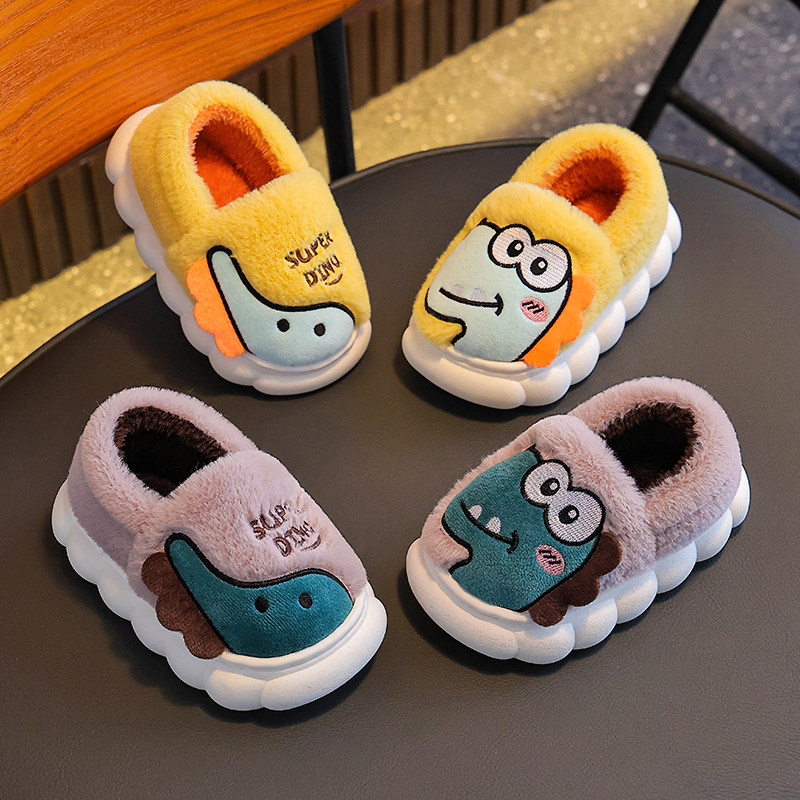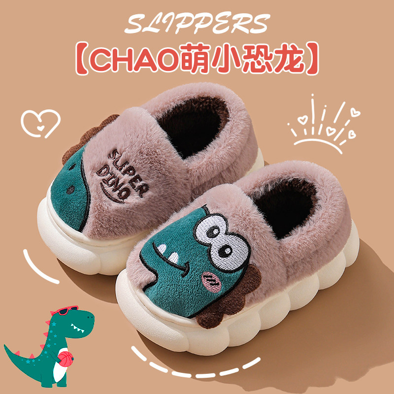 儿童棉拖加厚保暖加包跟男童室内家居女宝宝小孩恐龙防滑亲子拖鞋