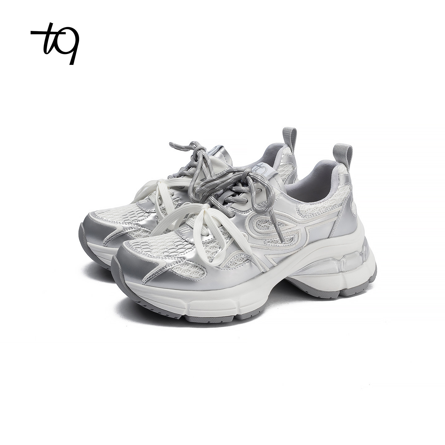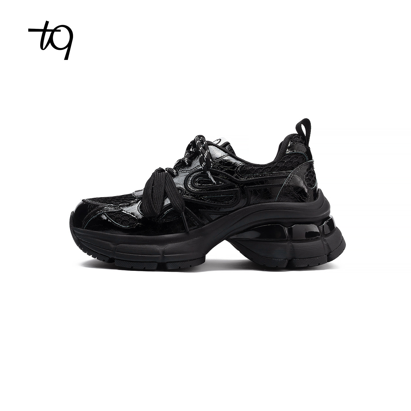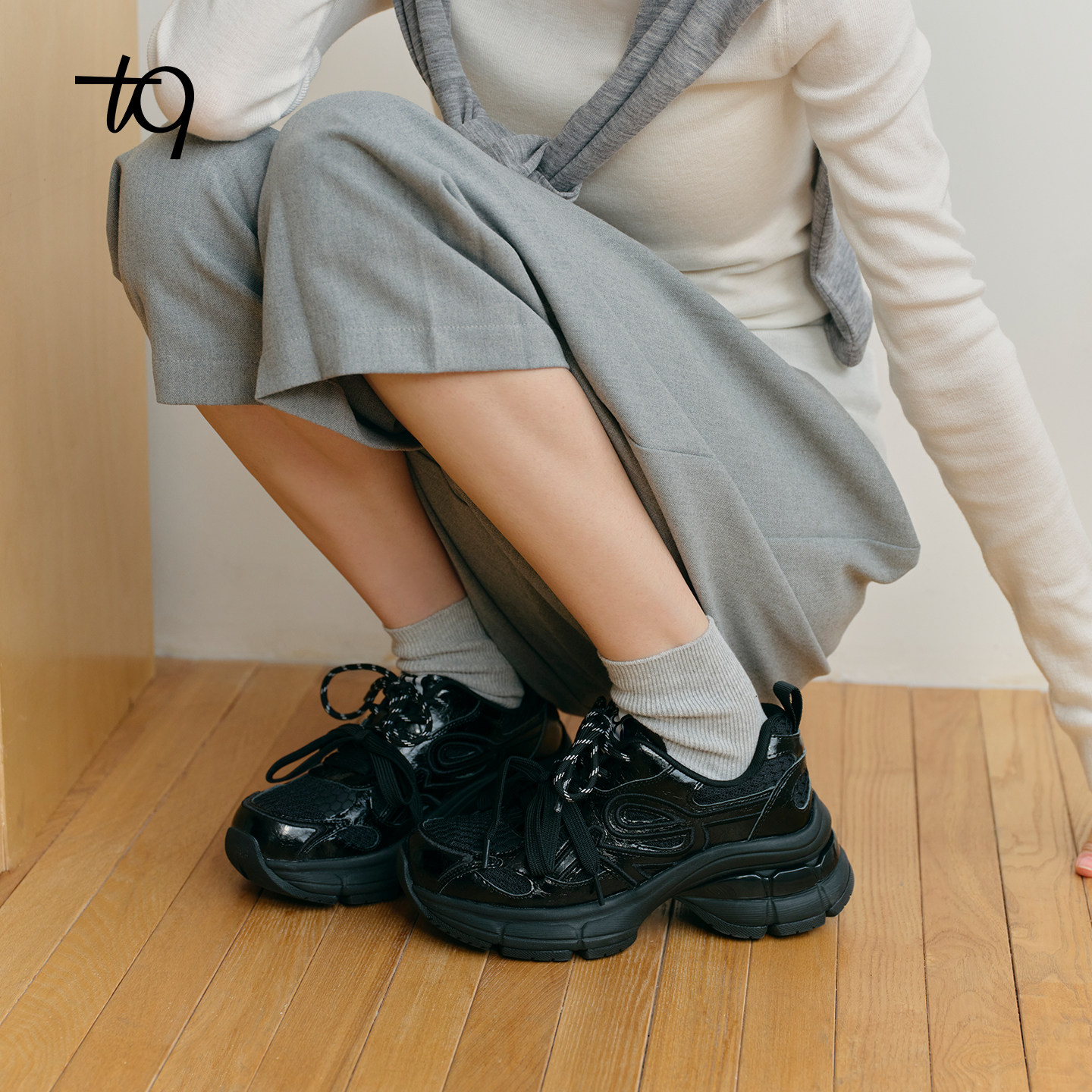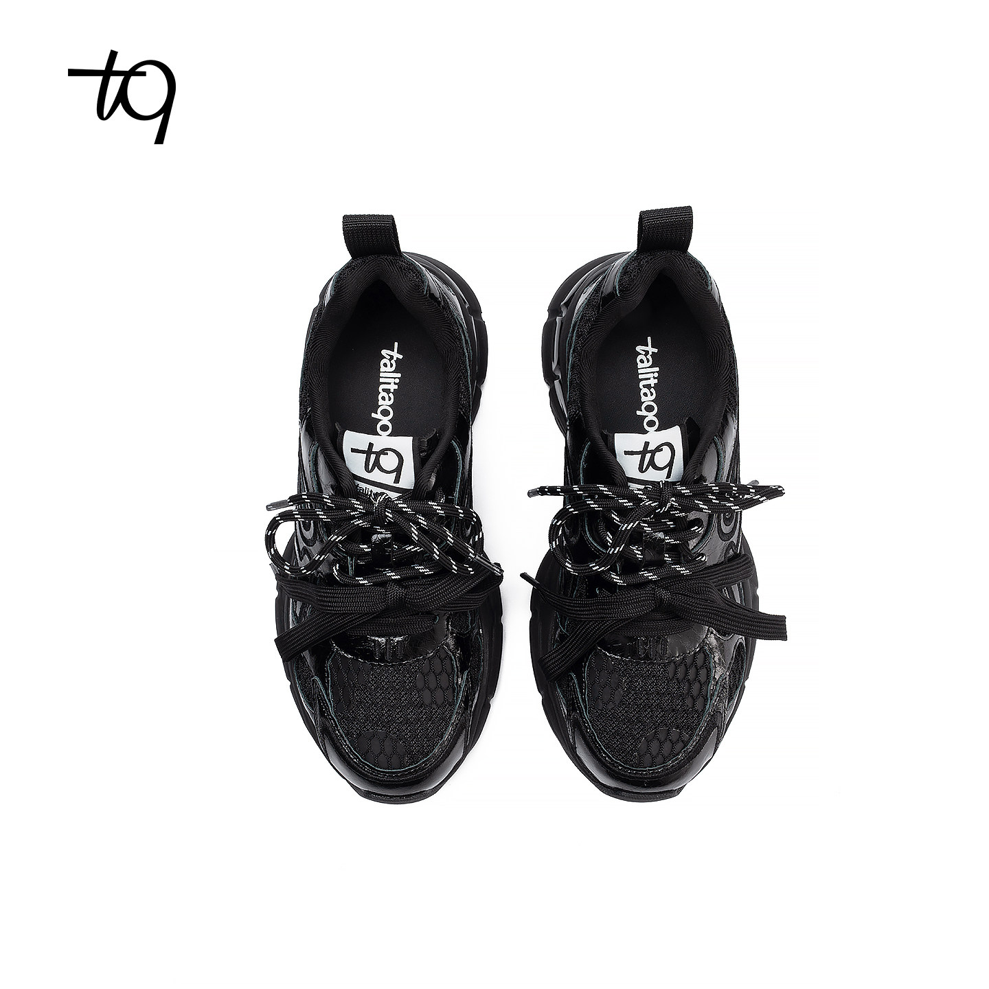 Talitaqoom2026春季新款光泽拼接刺绣双鞋带厚底老爹鞋机能风tq女
