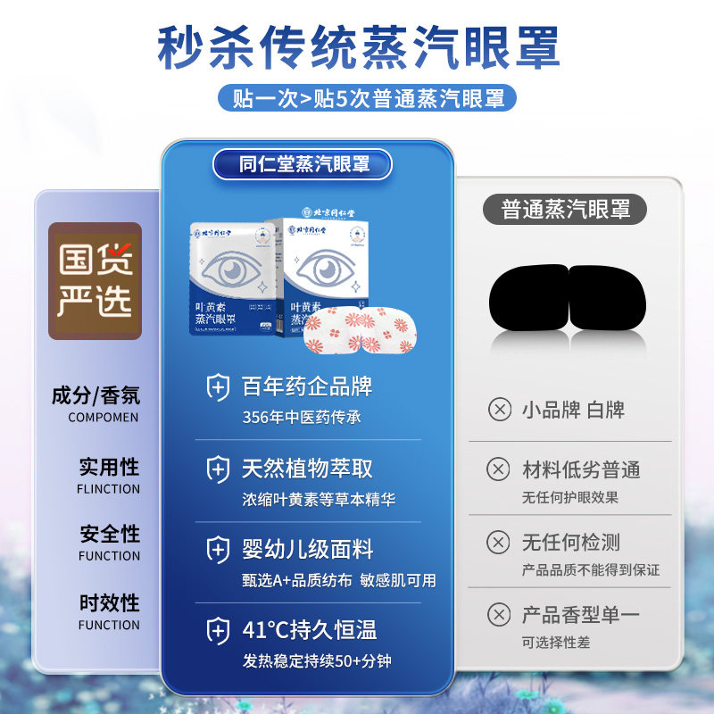 北京同仁堂眼罩蒸汽缓解眼疲劳热敷睡眠遮光学生艾草叶黄素助眠神