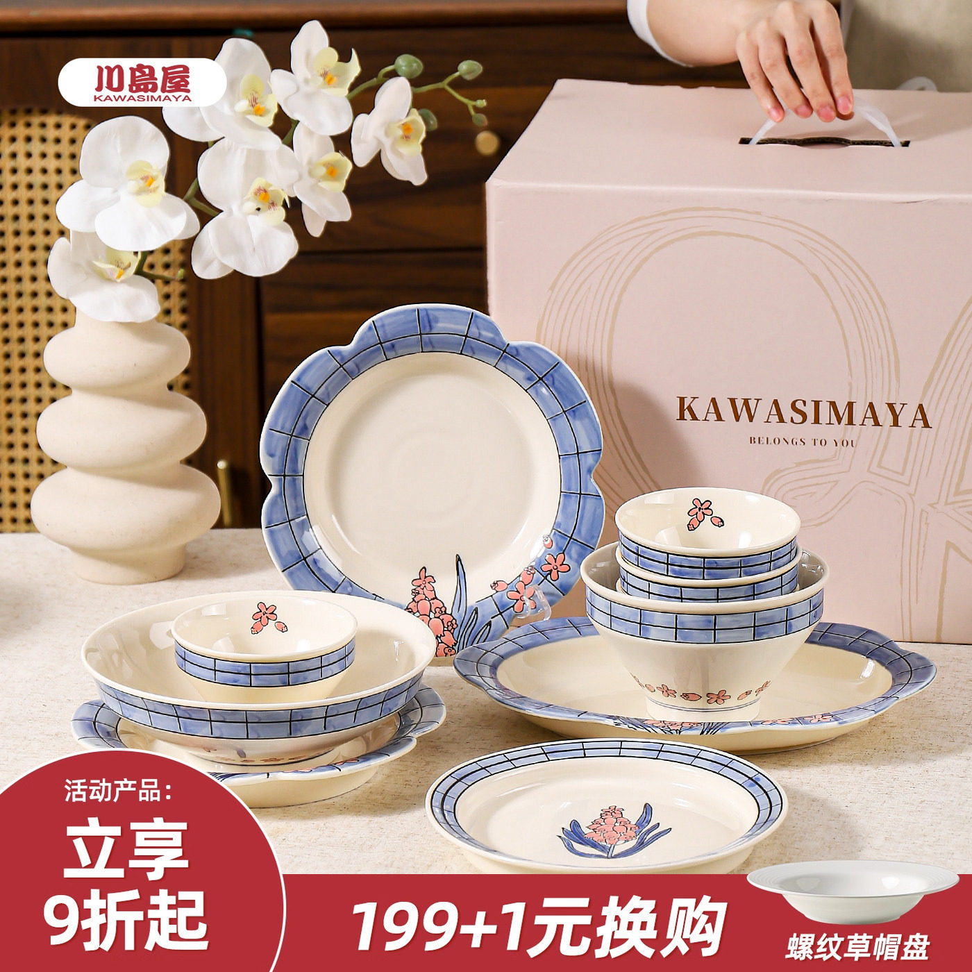 川岛屋餐具套装家用高颜值釉下彩碗具碗盘碟礼盒搬家乔迁新居礼物