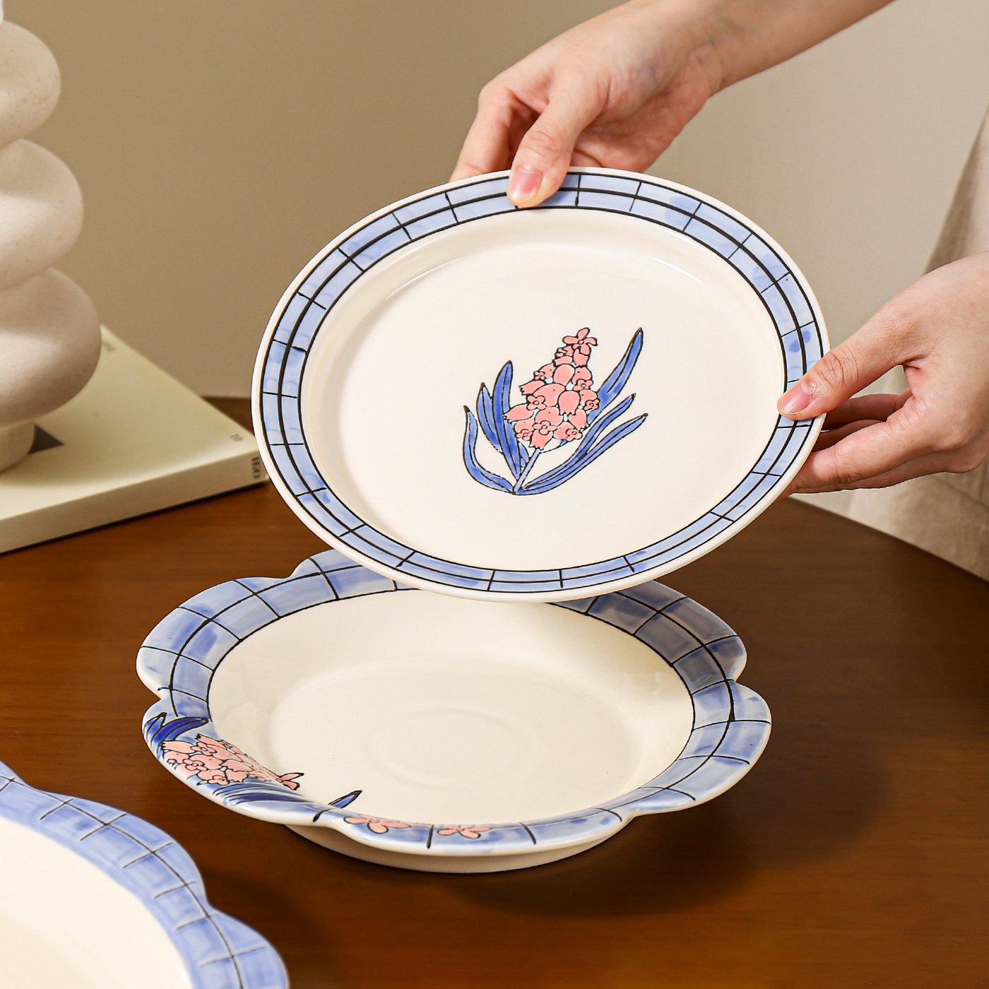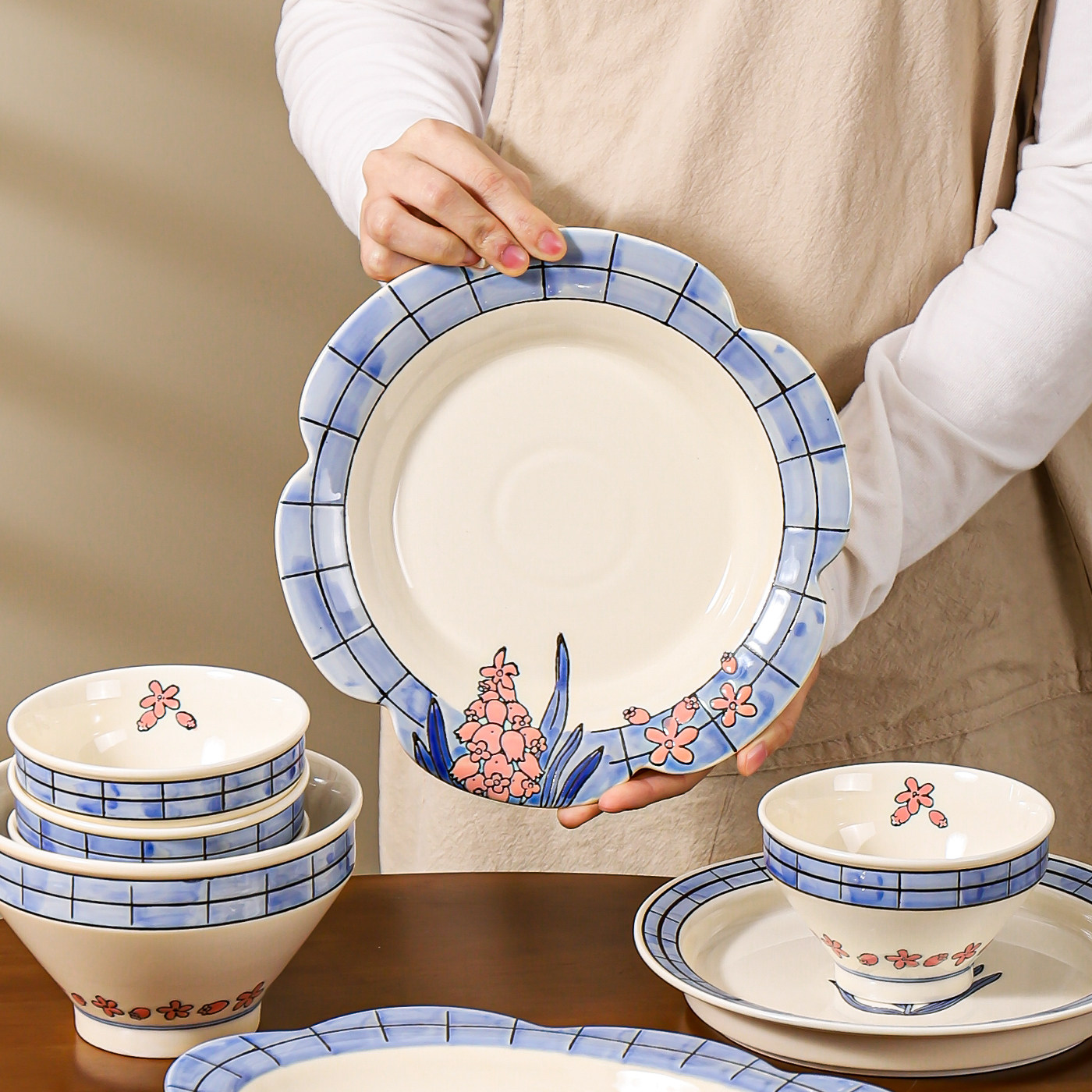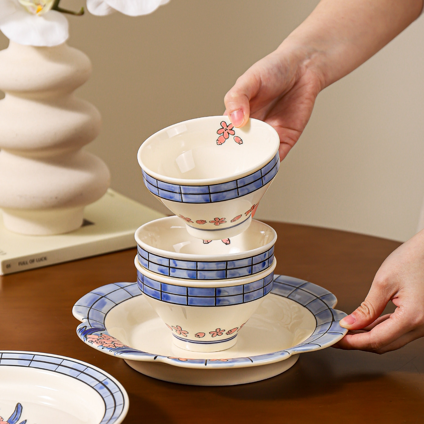 奶油风陶瓷碗家用卡通菜盘子可爱米饭碗汤碗釉下彩儿童餐具耐高温