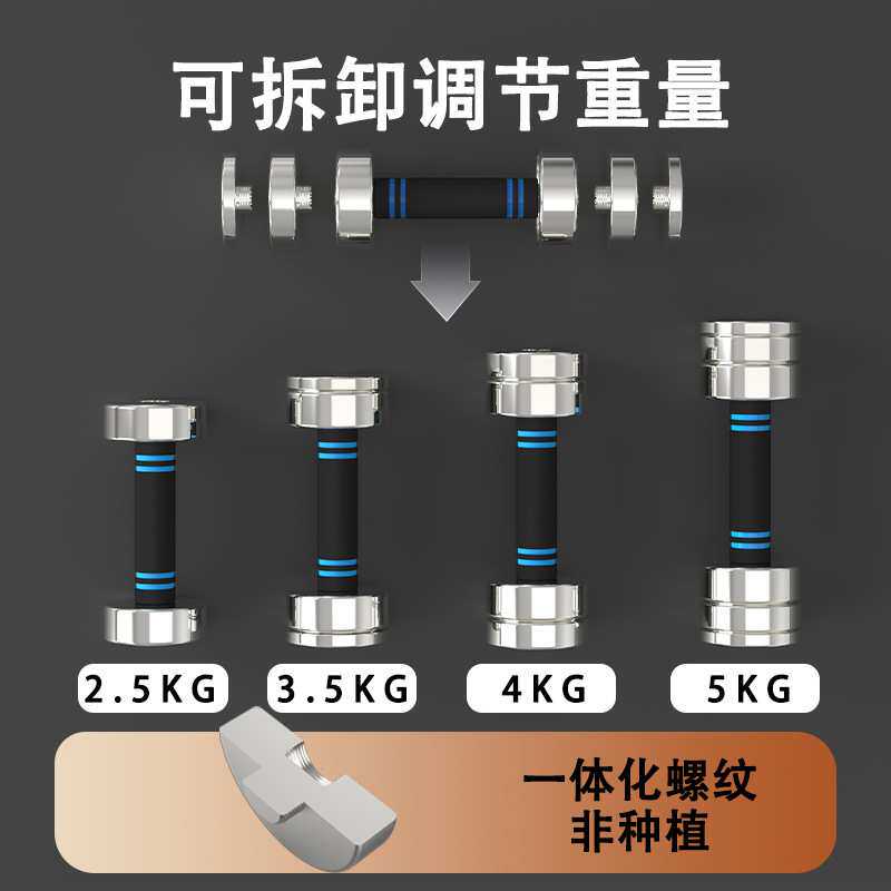 电镀纯钢实心哑铃男士精钢家用杠铃可调节重量拆卸组合健身女微瑕