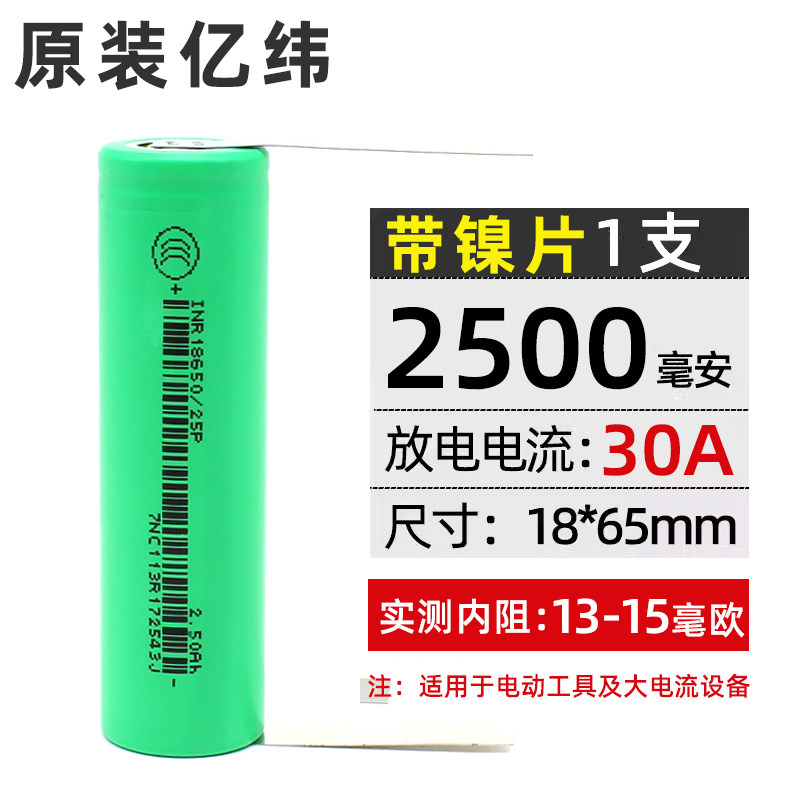 亿纬25P动力18650锂电池2500mAh3.7V12C高倍率30A放电工具电动车
