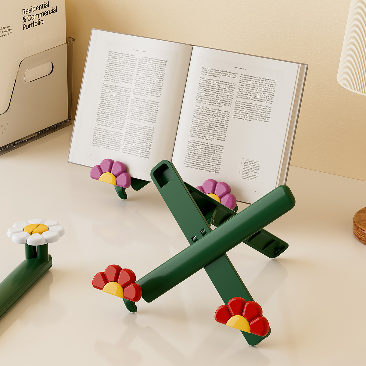 花朵阅读架儿童读书支架可折叠调节宝宝看书书立架多功能伸缩桌面绘本床上架子学生固定书本夹收纳放书神器