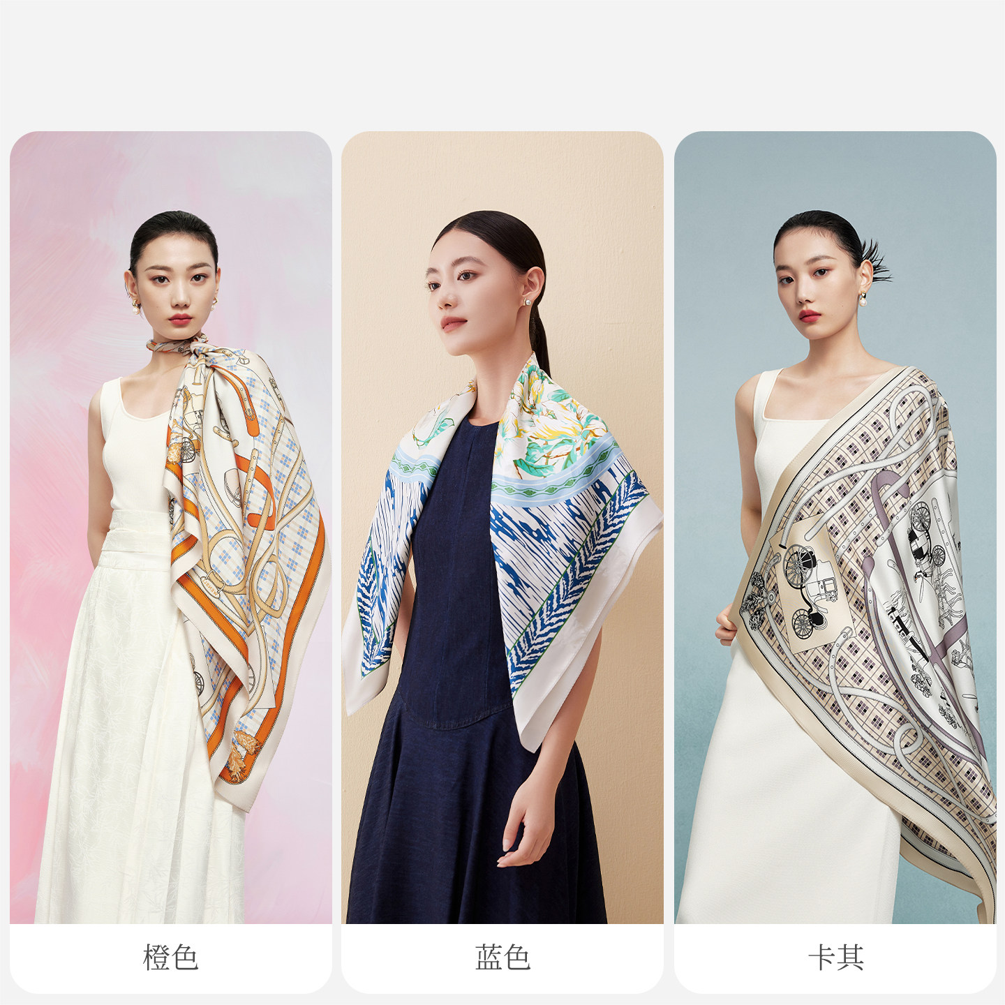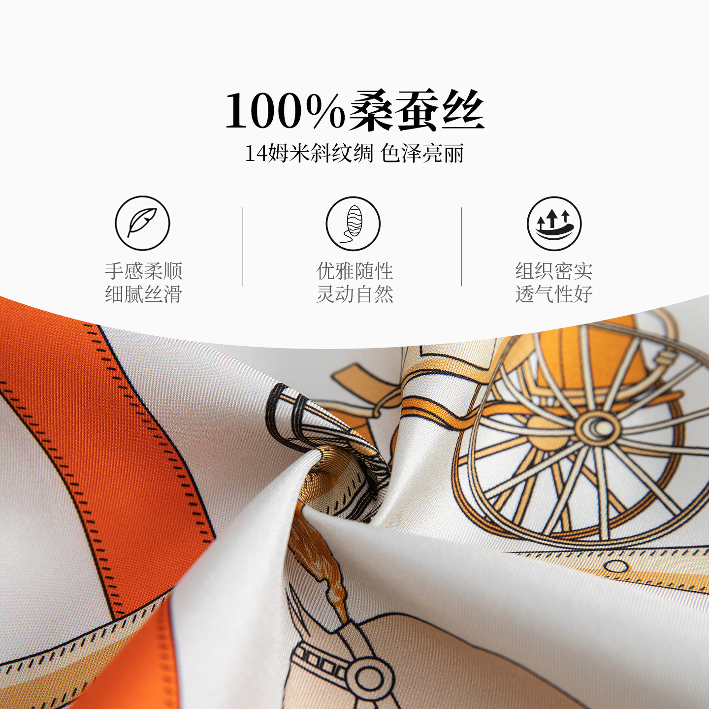 万事利春新品100%桑蚕丝真丝丝巾欧式链条印花大方巾88cm绣马金车