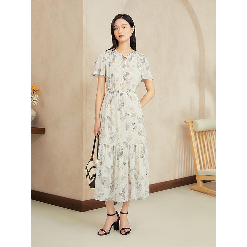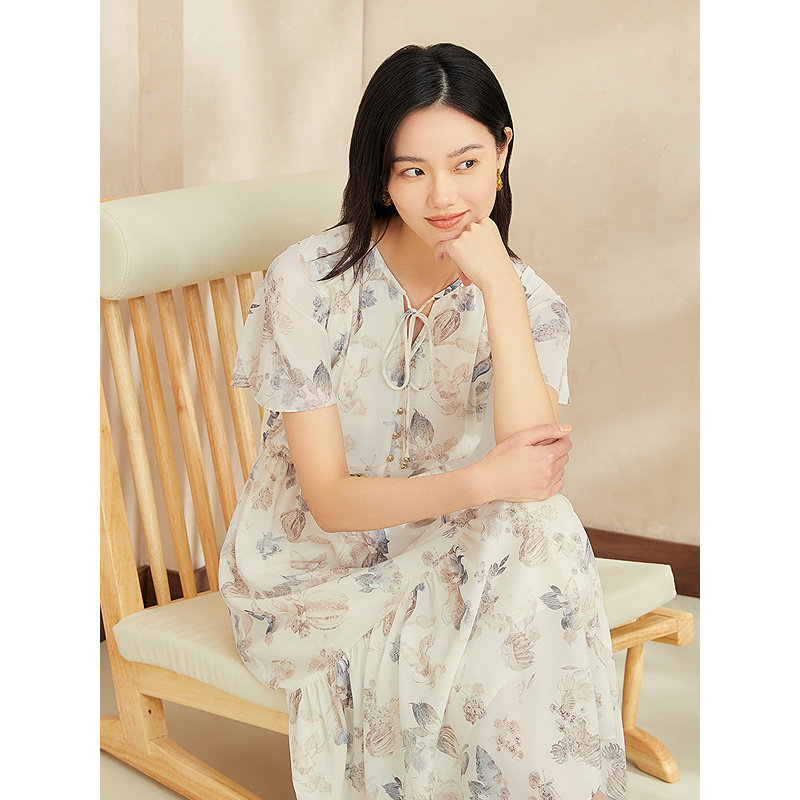 【真丝系列】YINER音儿2025夏季新款弹力桑蚕丝法式印花连衣裙