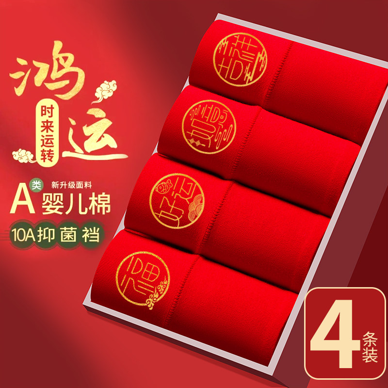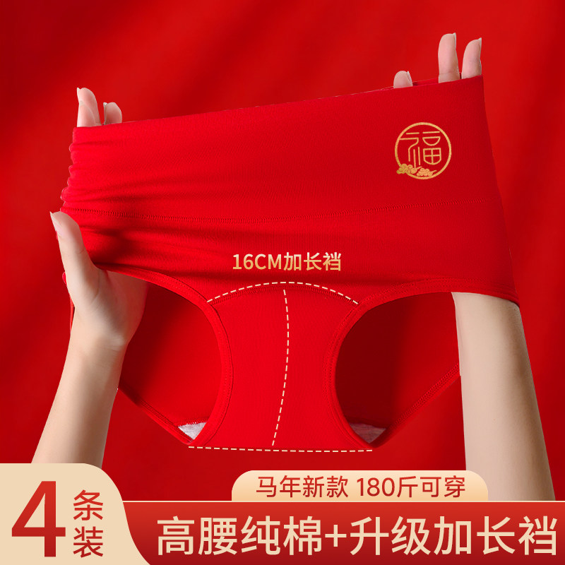 本命年大红高腰纯棉内裤女裆收腹结婚女士三角裤新年棉质加长抗菌