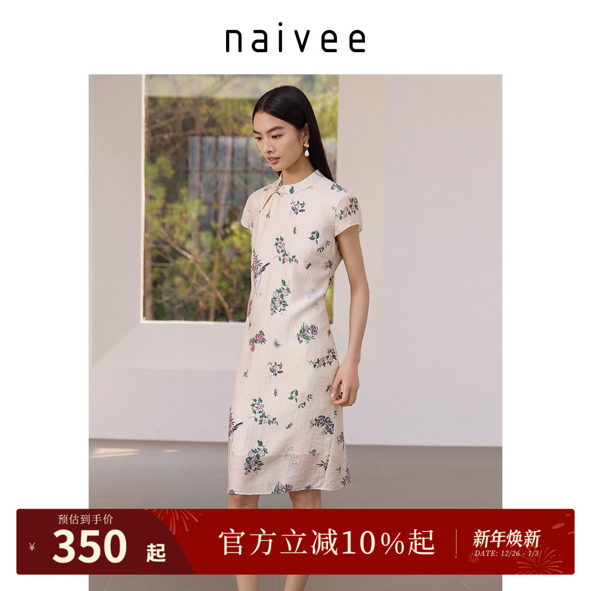 naivee纳薇2025夏季新款旗袍女新中式盘扣印花裙子莱赛尔连衣裙