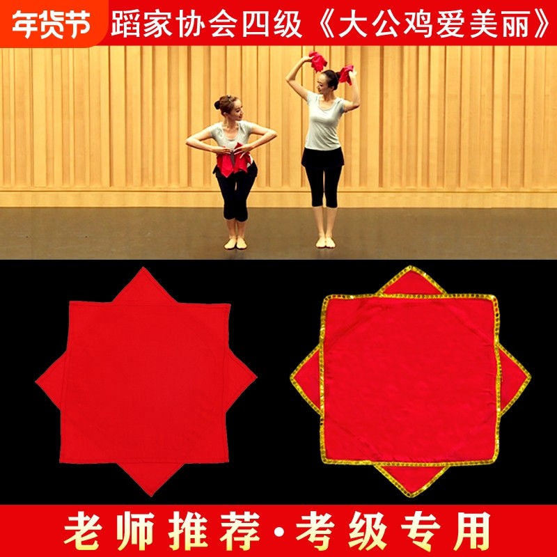 舞蹈手绢花棉绸布4级道具考级专用大公鸡爱美丽八角巾手帕一对
