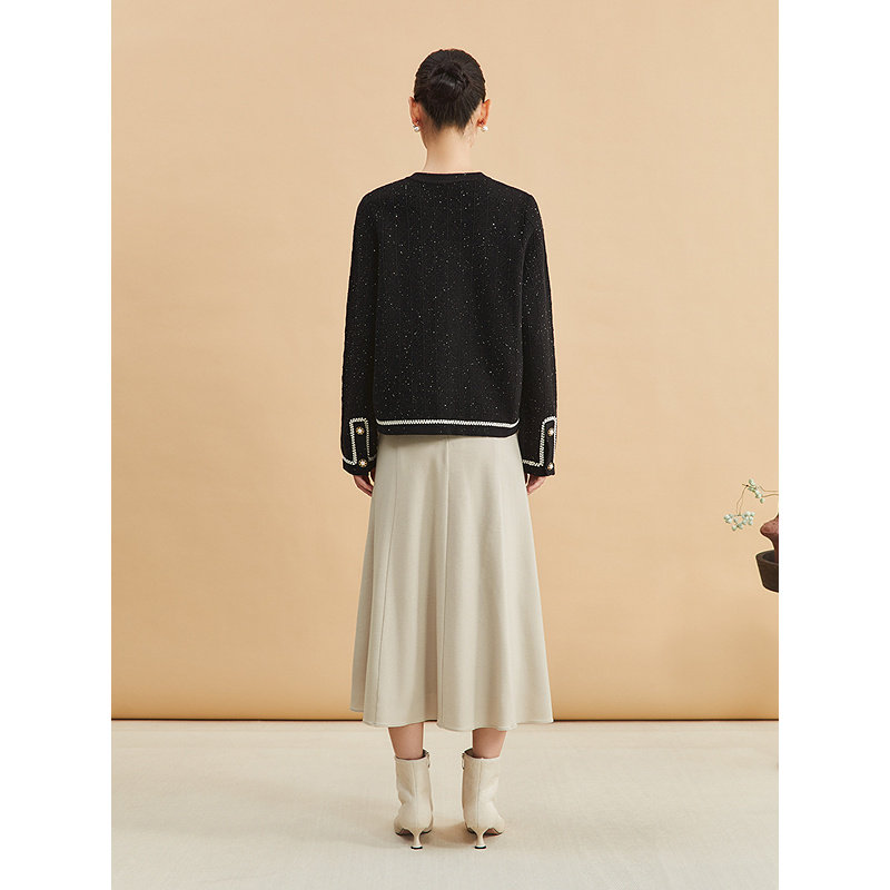 YINER音儿专选2026春季新款优雅小香风细闪珠片纱撞色针织衫套头