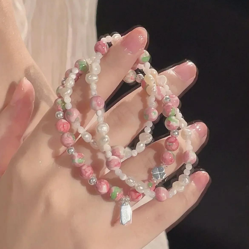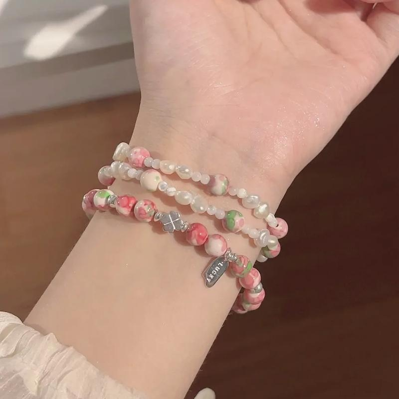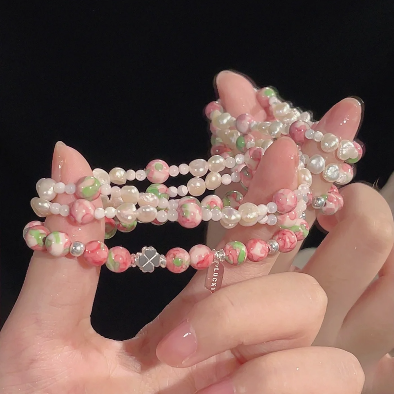 [桃桃乌龙」粉色天然石珍珠双层串珠手链轻奢小众高级感夏天手串