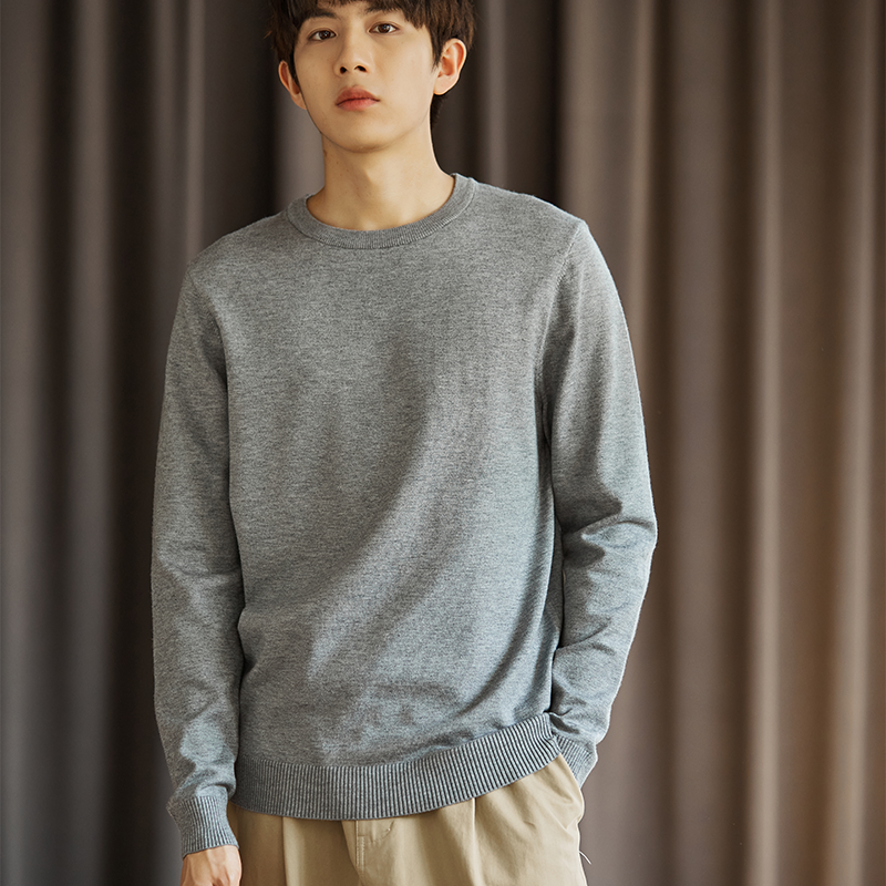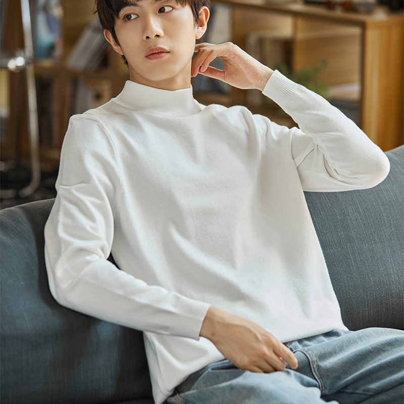唐狮秋冬新款男士打底衫内搭纯色圆领针织衫慵懒风保暖半高领毛衣