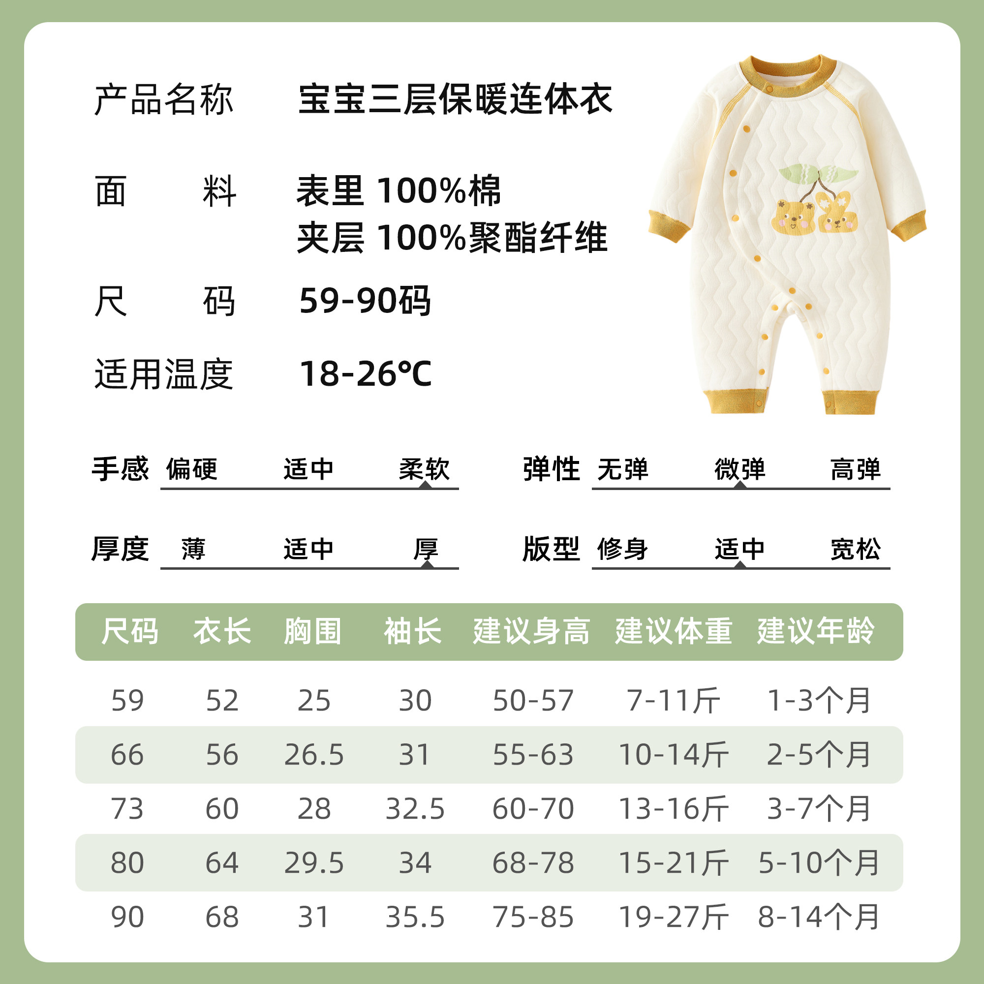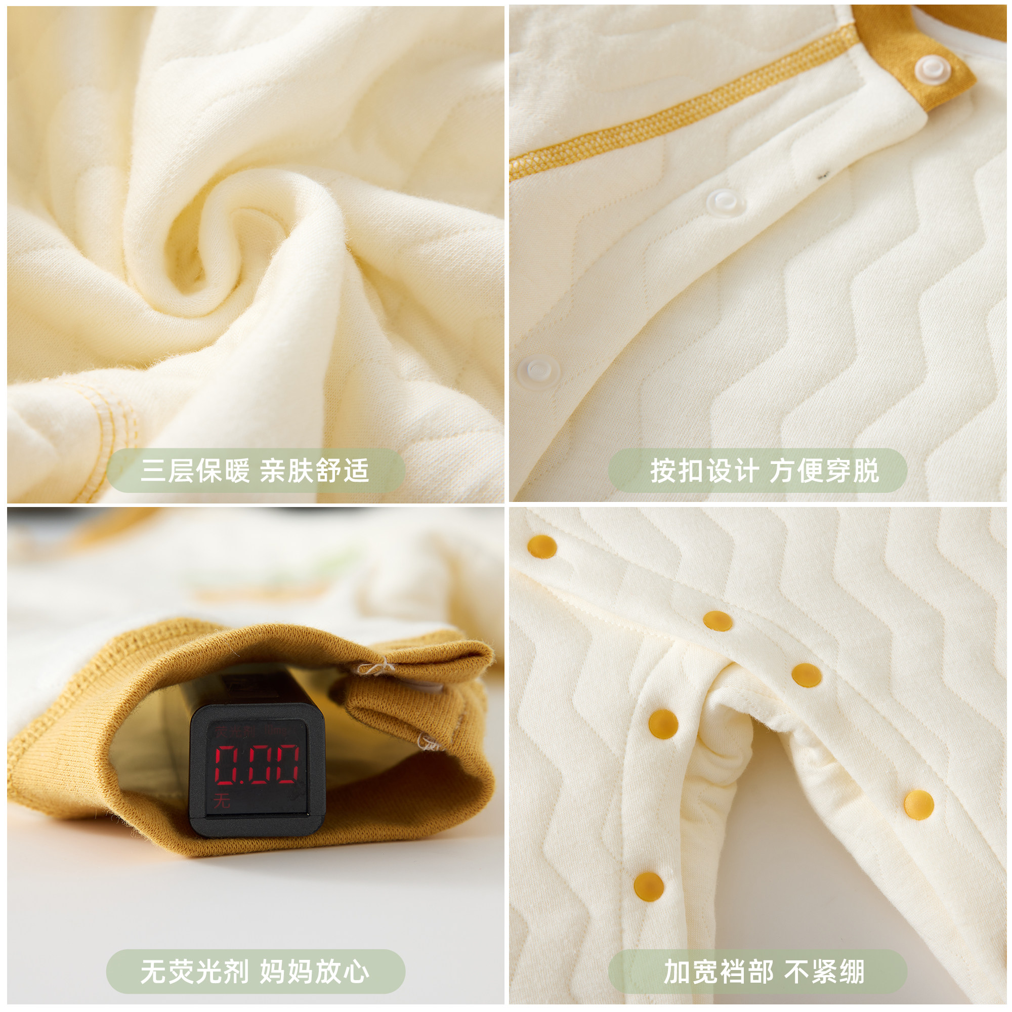 婧麒新生儿婴儿衣服秋冬夹棉满月纯棉初生宝宝秋装连体衣a类爬服