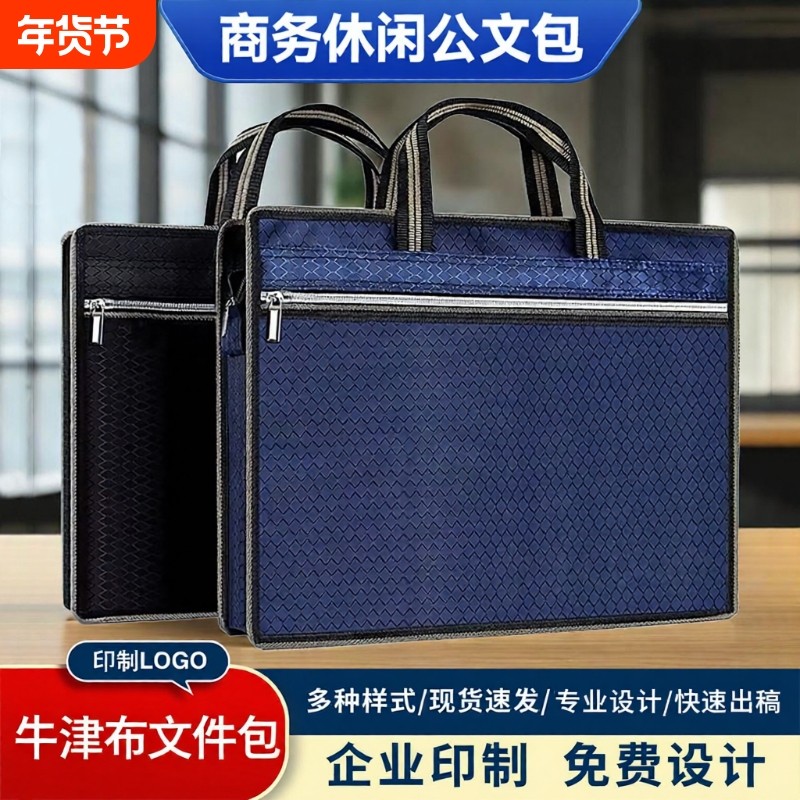 A4资料包公文包文件袋拉链式手提袋帆布手提拉链袋可印logo耐磨防水牛津布文件包男商务办公会议资料收纳袋