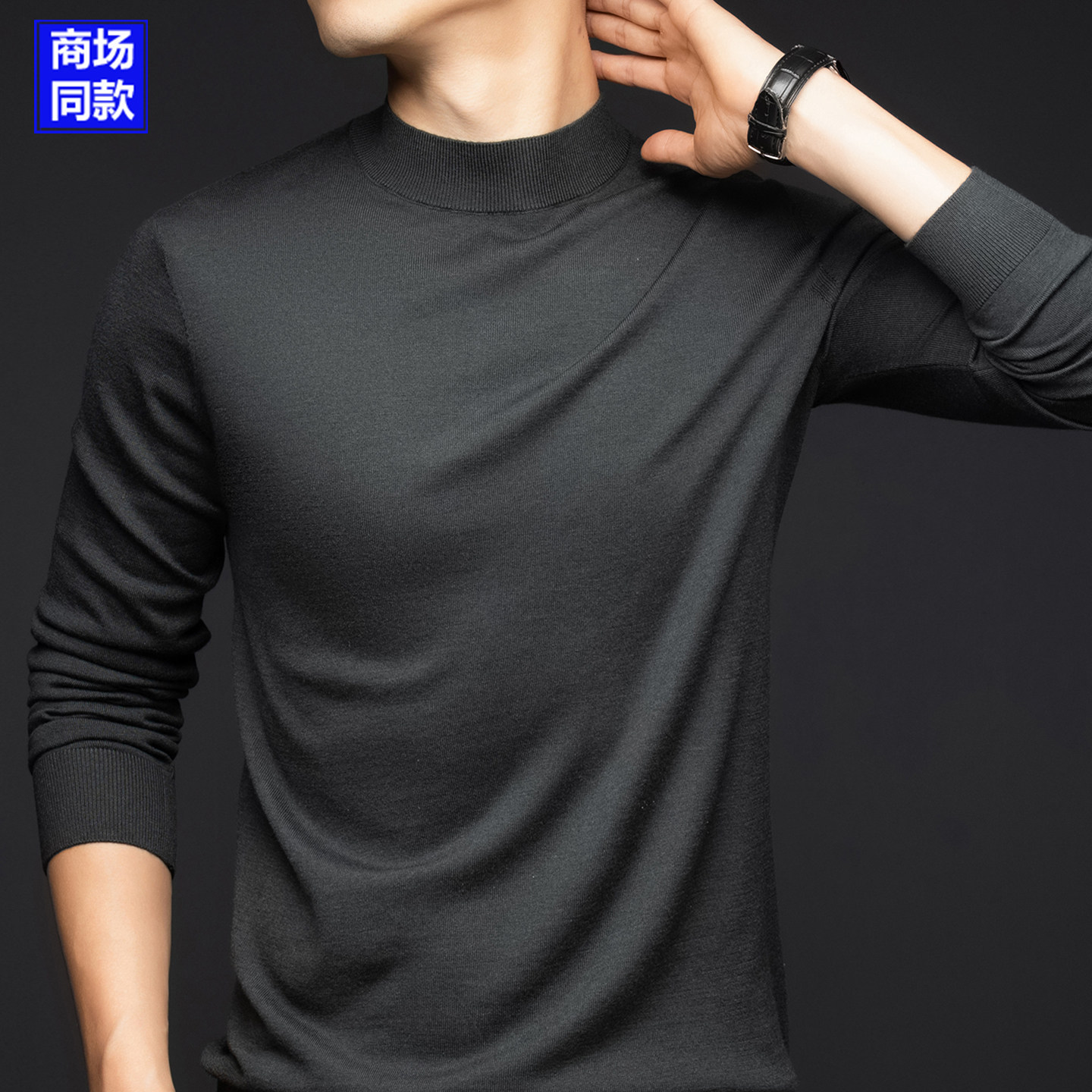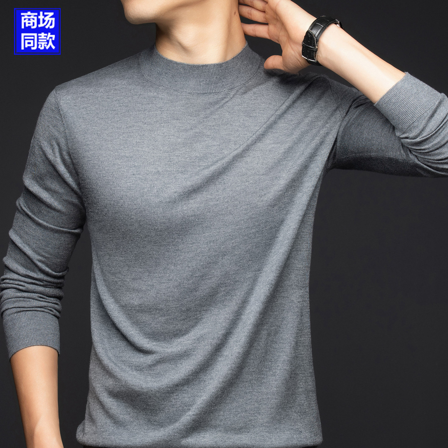 鄂尔多斯市可机洗羊绒衫薄款精纺羊毛衫男半高领品牌打底衫毛衣秋