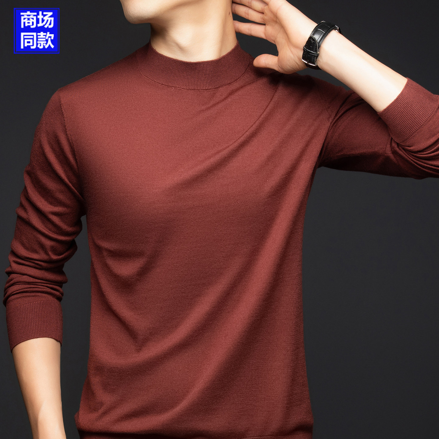 鄂尔多斯市半高领100%纯羊毛衫男休闲中厚保暖毛衣针织打底羊绒衫