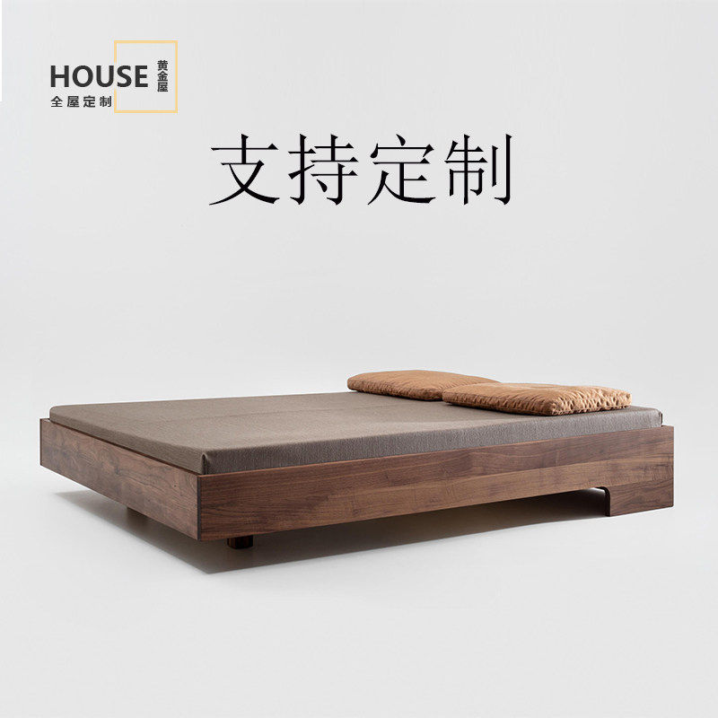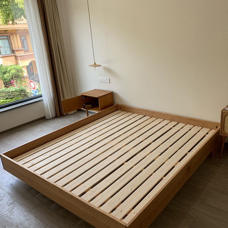 北欧实木无床头悬浮床原木小户型落地双人床主卧榻榻米现代简约矮