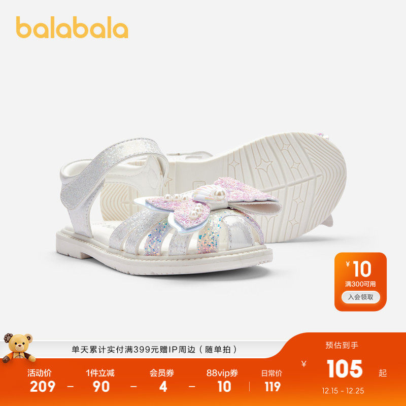 巴拉巴拉女童凉鞋儿童鞋子夏新款精致小女孩软底水晶公主鞋蝴蝶结