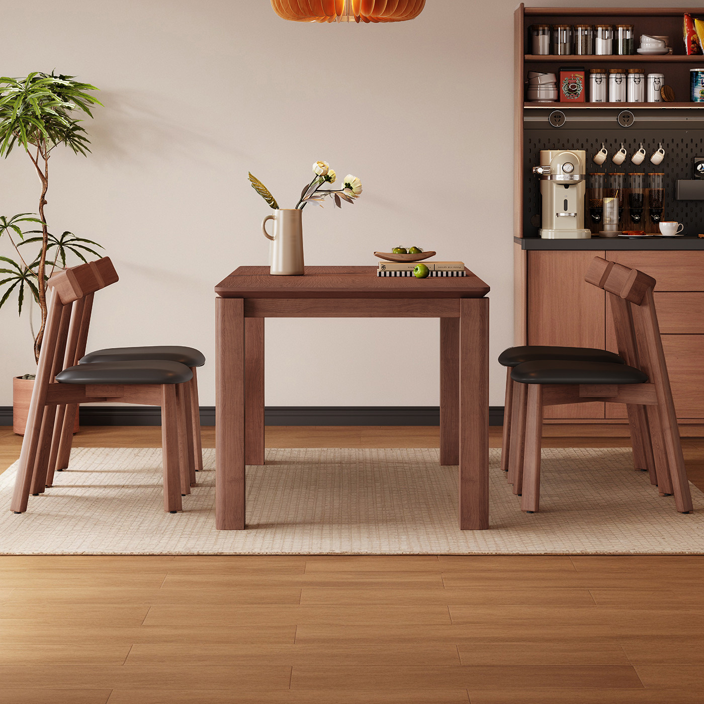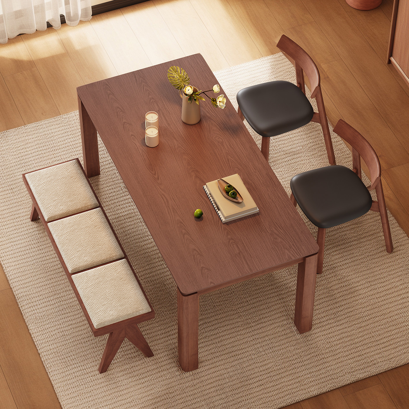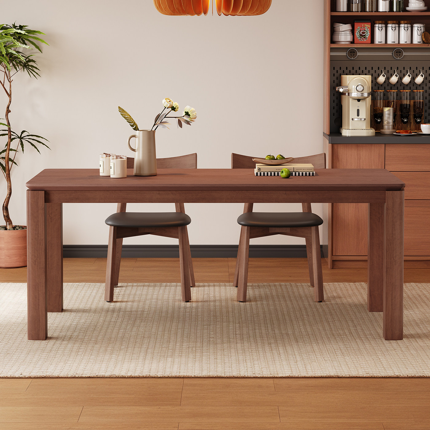 中古风实木餐桌长方形胡桃色白蜡木皮家用现代简约原木大板桌