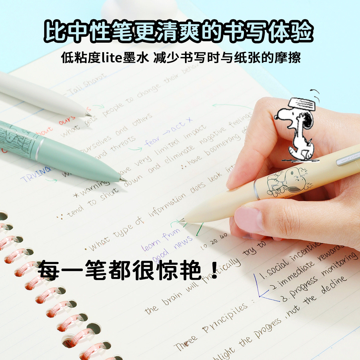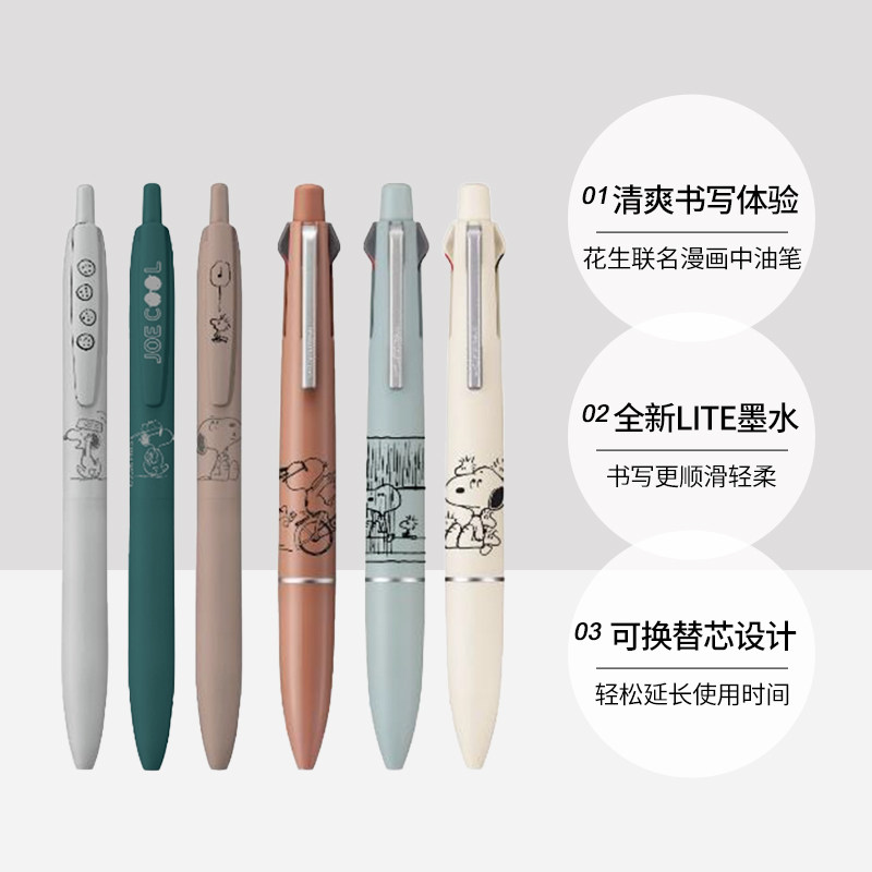 【自营】uni三菱铅笔SXN-LS史努比限定中油笔按动式低粘度Lite墨水花生漫画联名顺滑圆珠笔黑色中油原子笔