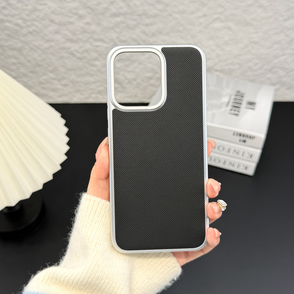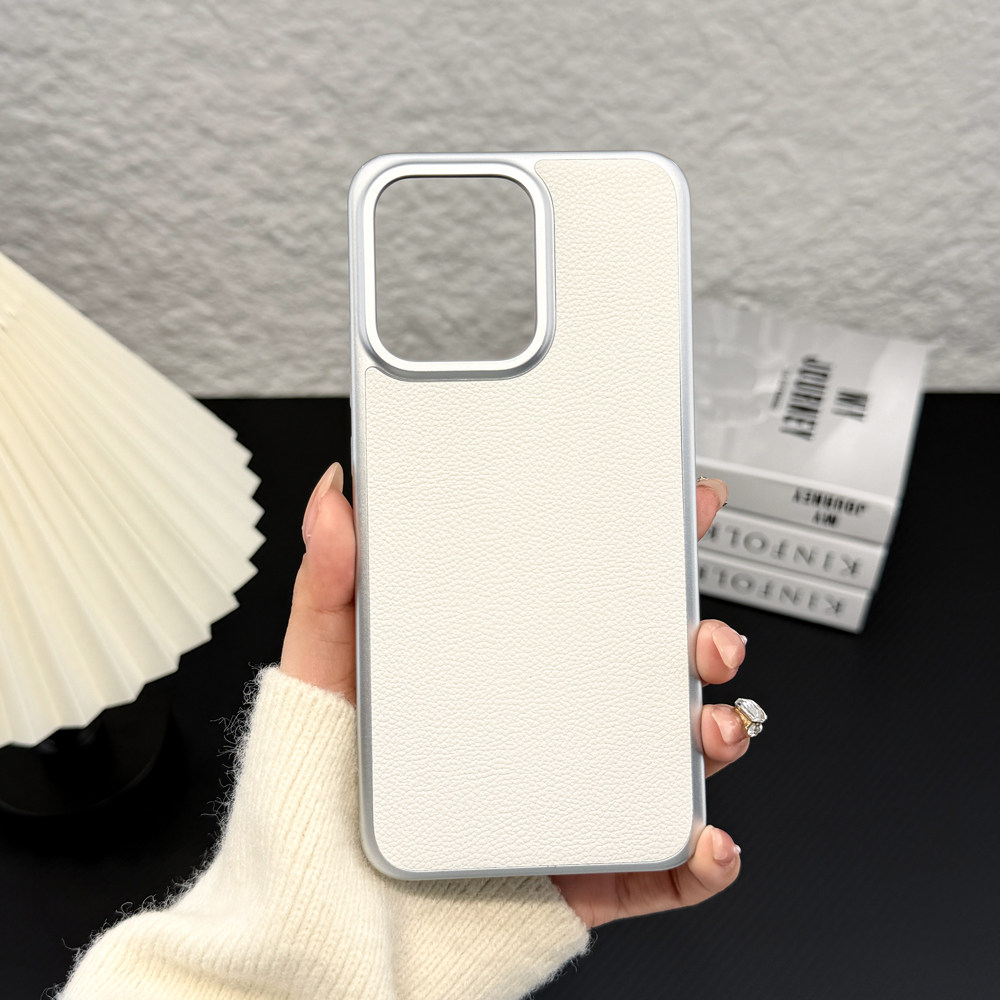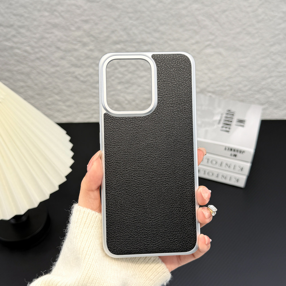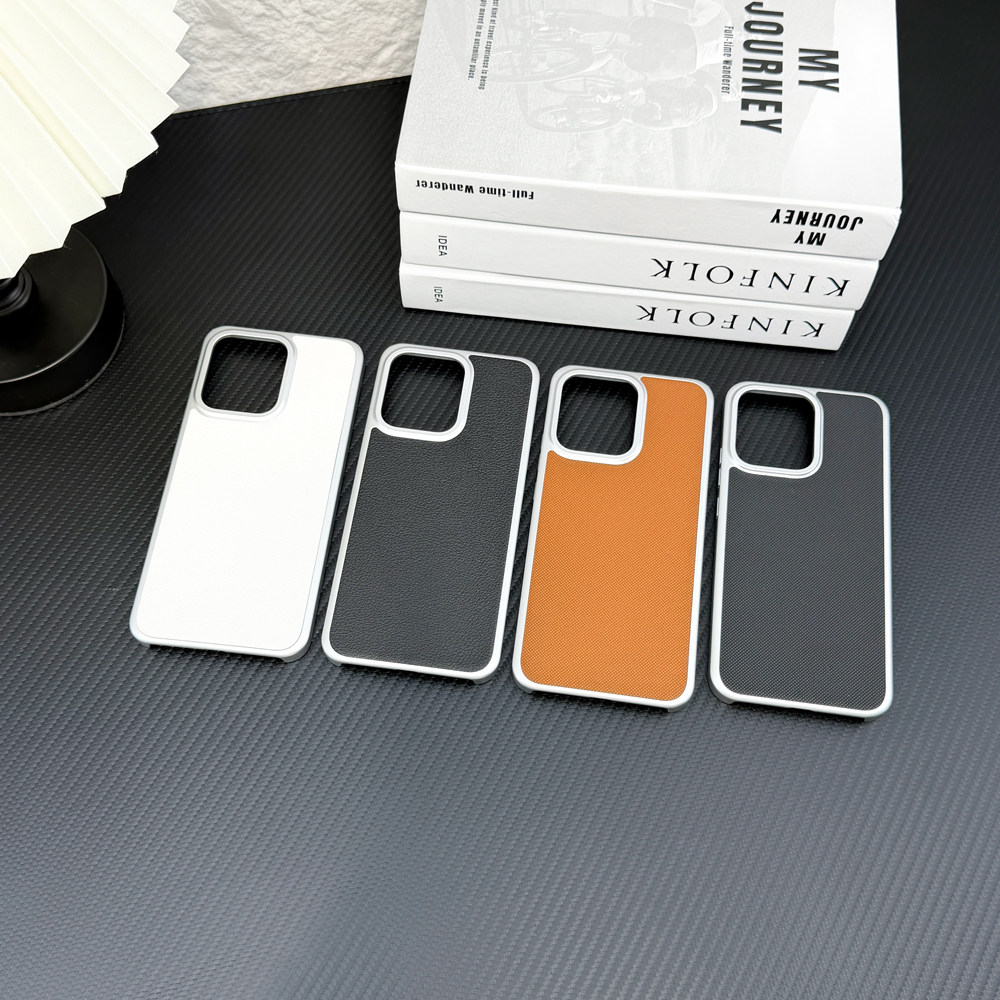 适用/opporeno14pro手机壳 三包经典款 PC素材+金属烤漆+优质素皮+镭雕字母