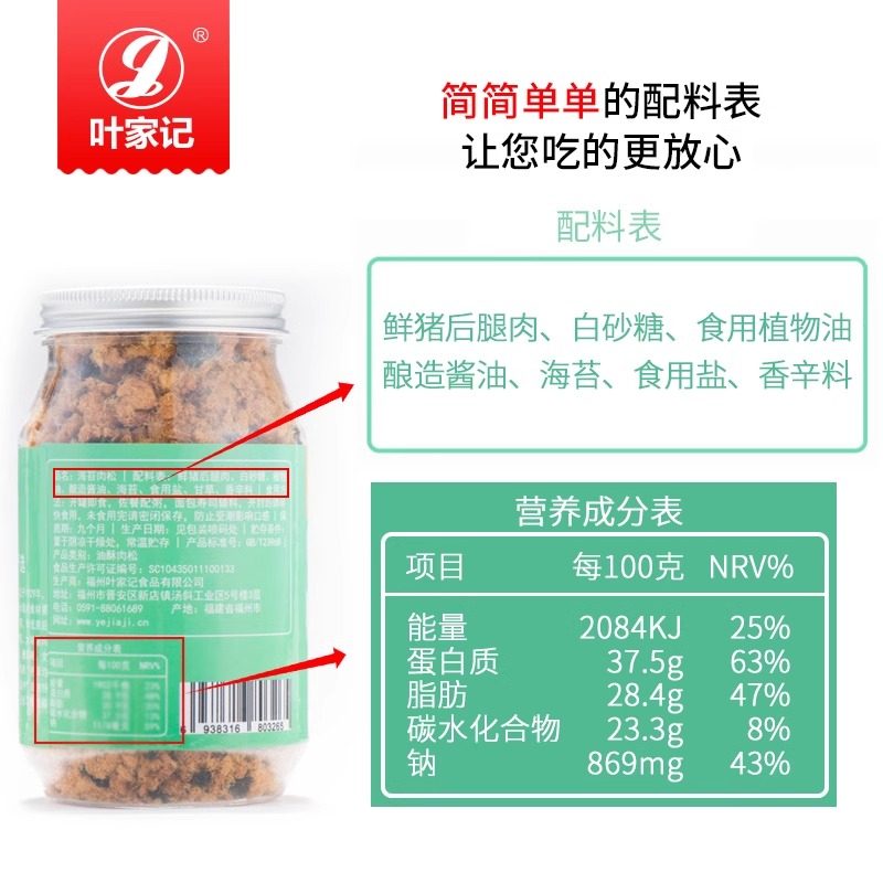 叶家记芝麻海苔猪肉松碎拌饭料 肉松寿司专用罐装送儿童辅食食谱