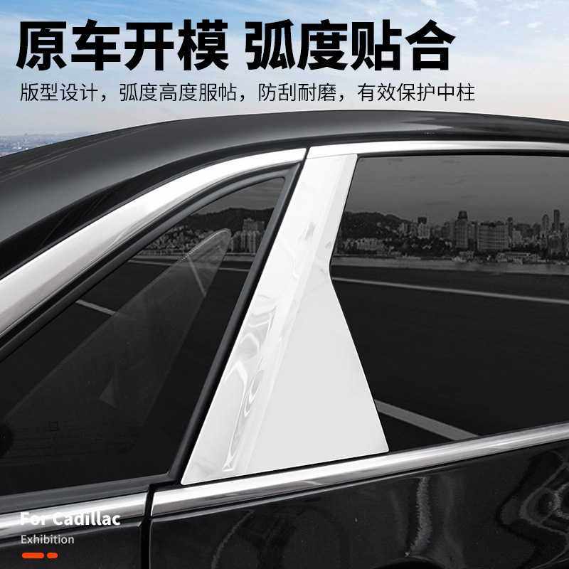 适用凯迪拉克xt5ct6改装中柱车窗亮条框AB柱车身饰条不锈钢防护贴