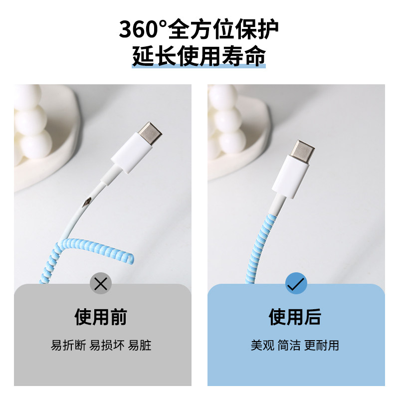 适用数据线纯色保护绳套适用于苹果13/12/14/华为/荣耀/小米/vivo/OPPO充电线手机充电器充电线缠绕绳防折断