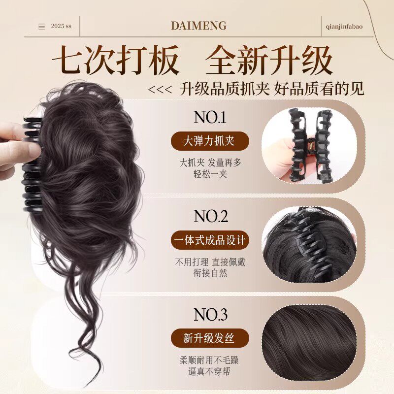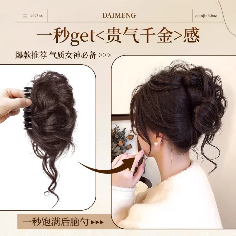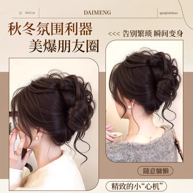 低扎丸子头假发鸡毛头抓夹盘发发包慵懒感造型头饰自然蓬松后脑勺