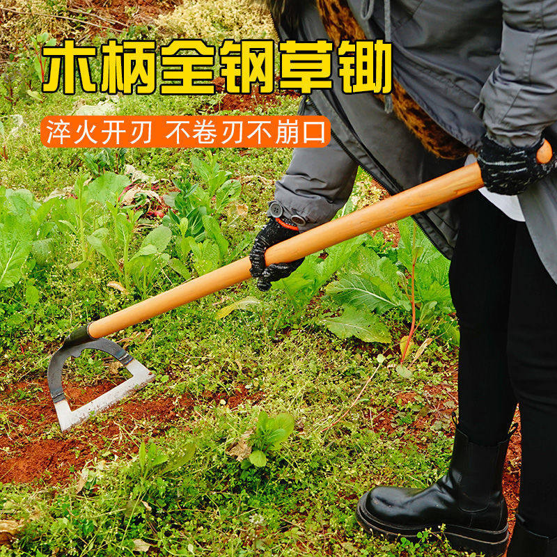 除草锄头锯片空心锄加厚钢锄除草神器农用长柄锄头全钢大号钢锄头
