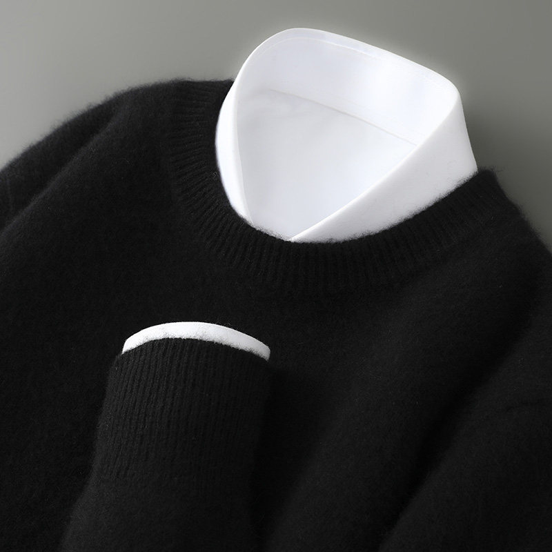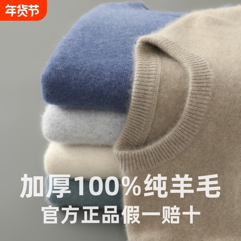 秋冬新款100%纯羊毛衫男圆领套头毛衣宽松大码针织打底羊绒衫内搭