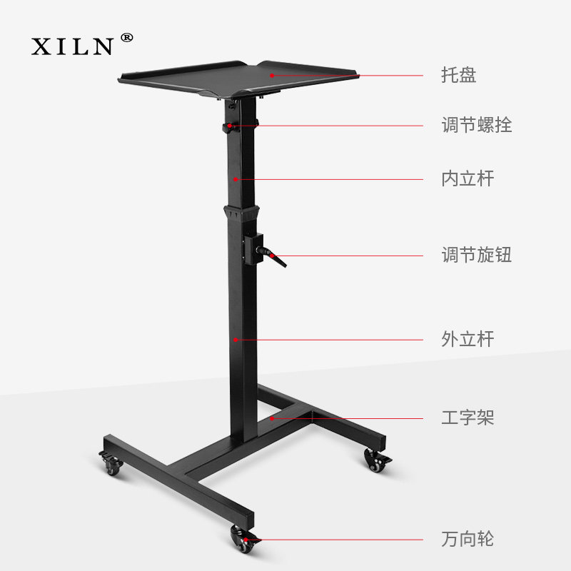 XILN投影仪移动推车支架 投影机四轮移动带锁止功能升降工作平台