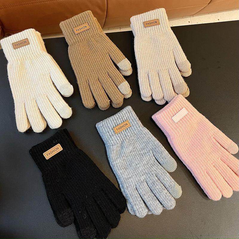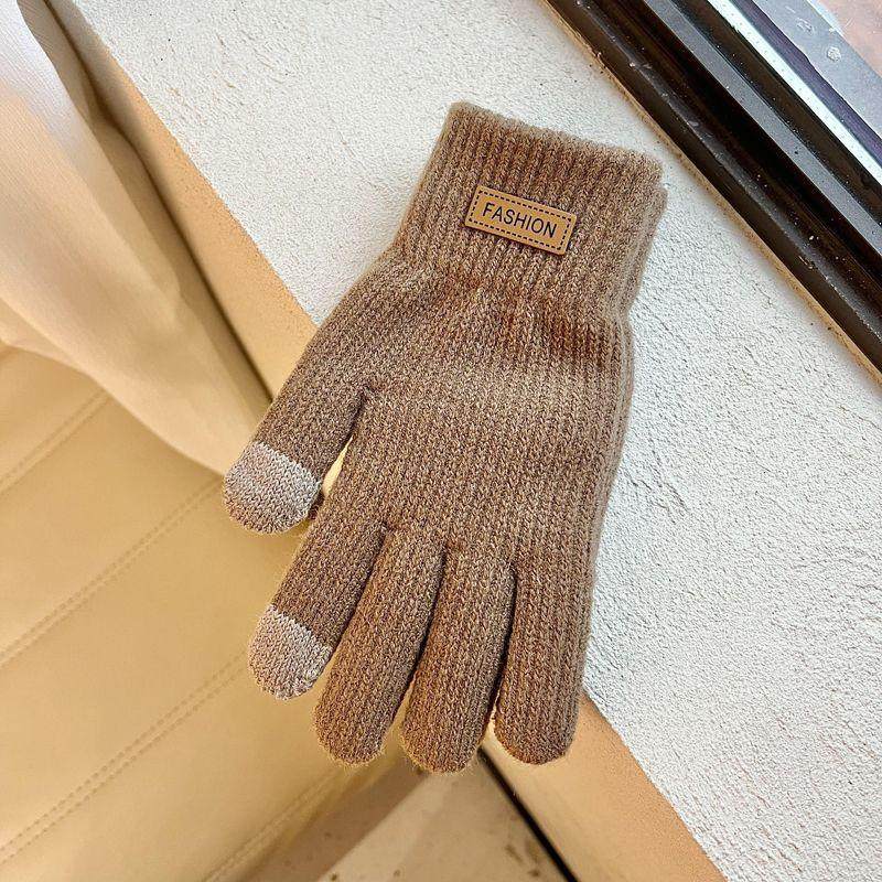 可触屏棉手套男士冬季保暖加绒加厚毛线针织骑行男女同款防寒手套