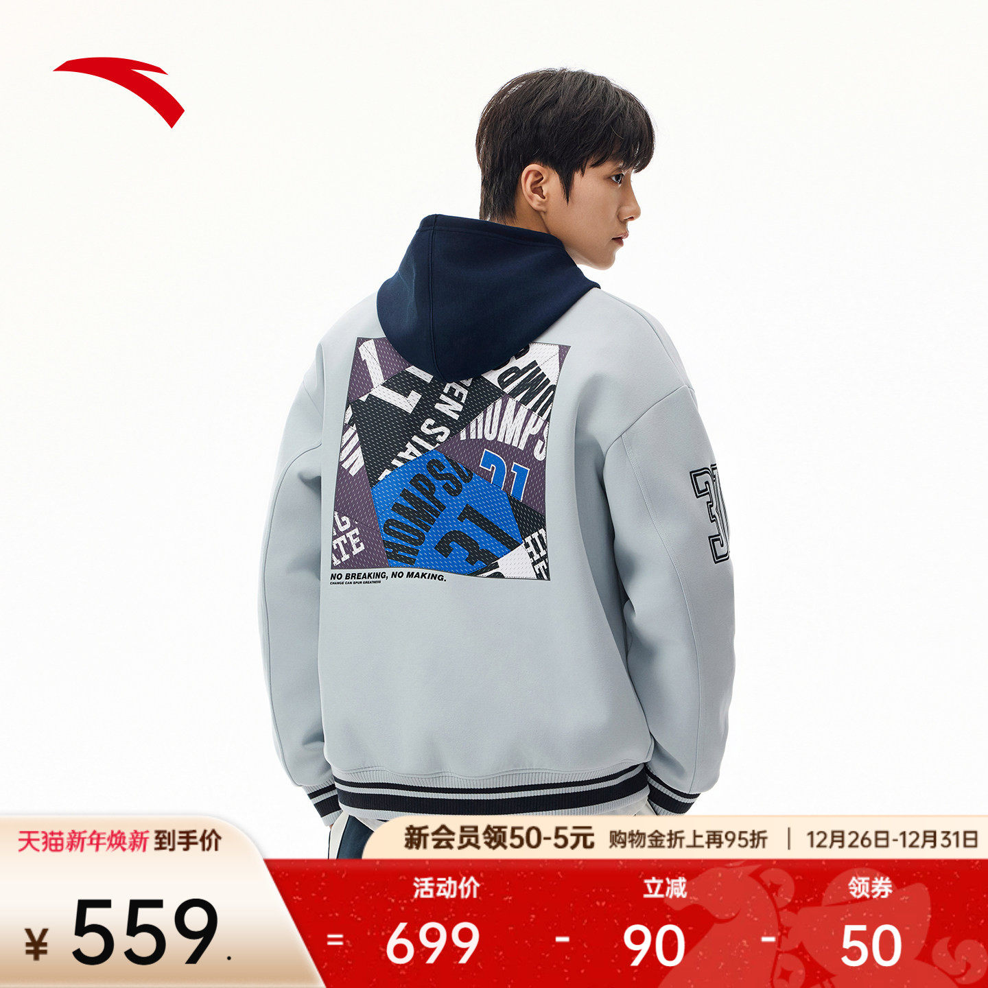 安踏美式棒球棉服厚外套男士冬季新款宽松夹克运动上衣152541801