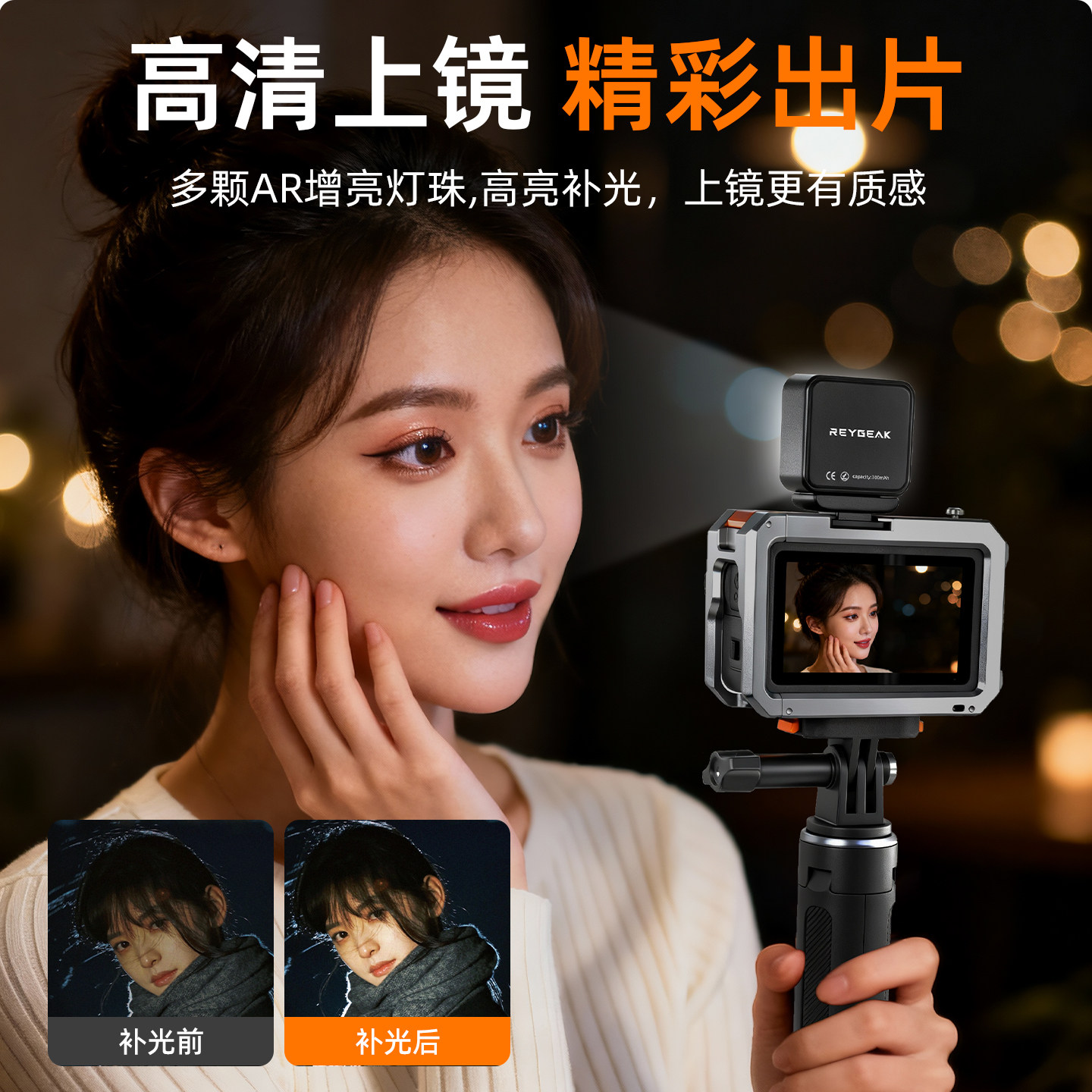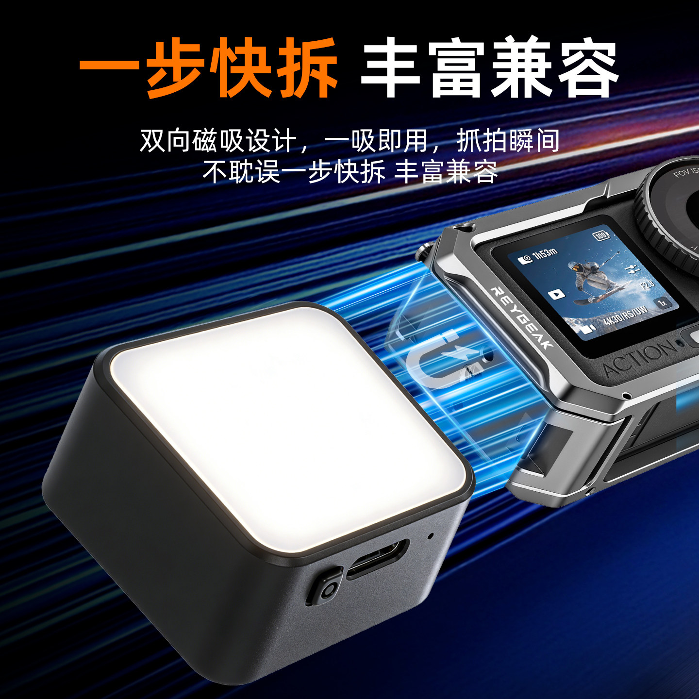 REYGRAK适用DJI大疆Action6/5pro/4/3磁吸补光灯pocket3口袋便携式快拆打光灯运动相机vlog拍摄神器补光配件