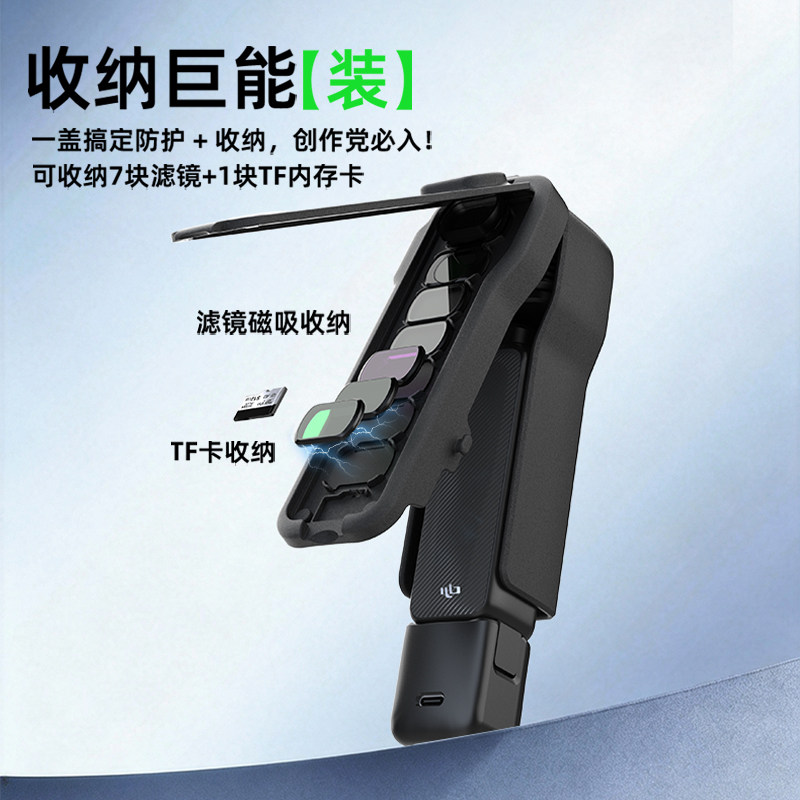 URZM全套升级适用大疆dji pocket3口袋相机机身镜头增广镜滤镜收纳壳收纳包配件原装保护壳保护粉色盖板