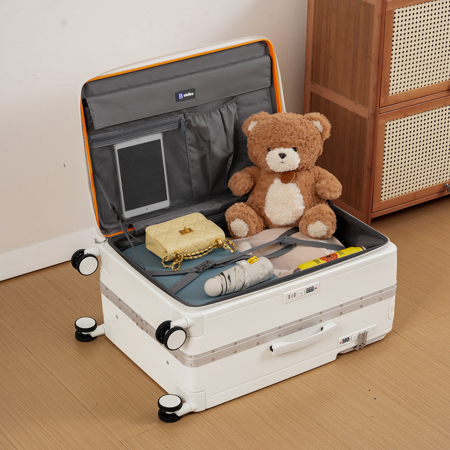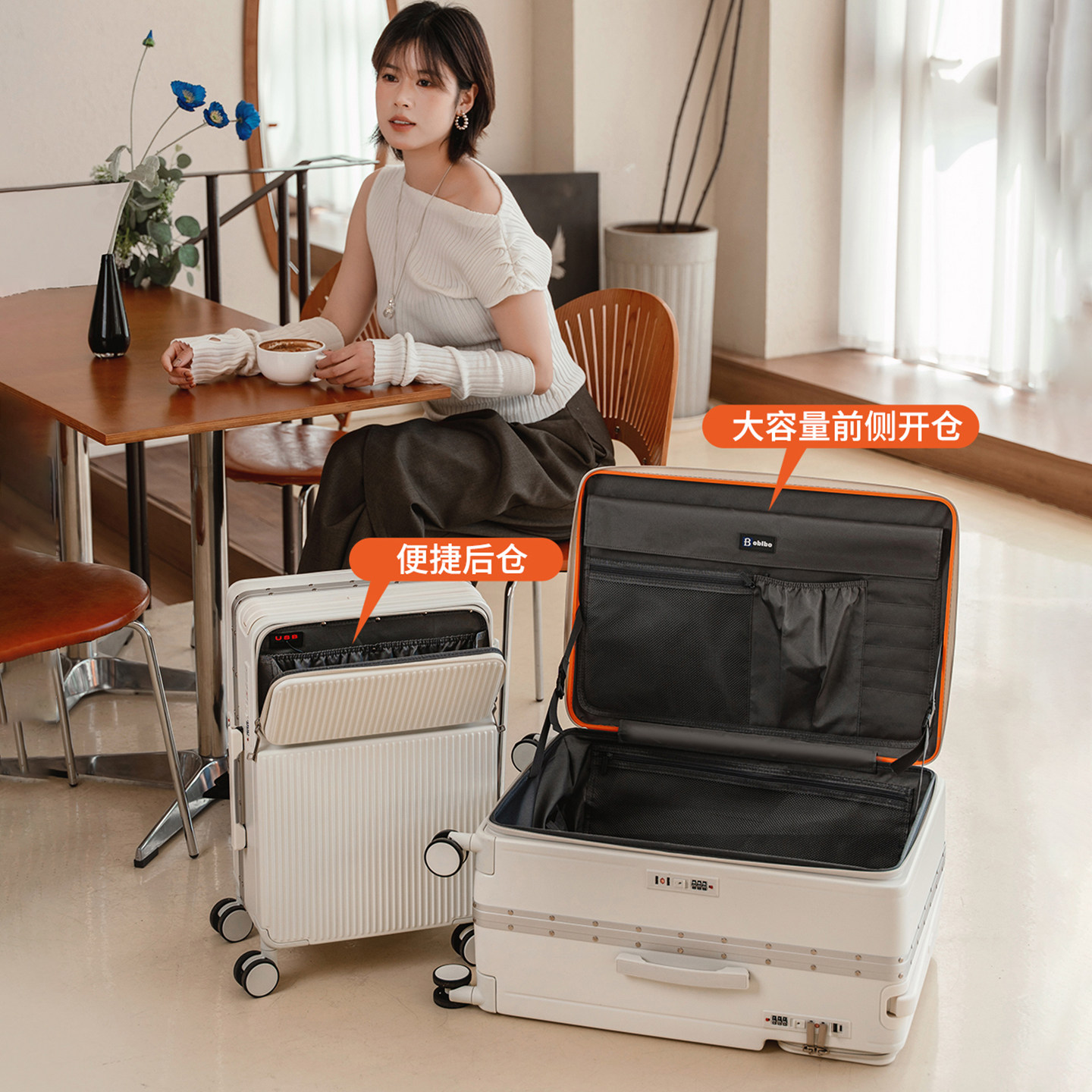 前开盖行李箱女2025新款中置宽一九开拉杆箱20寸登机密码箱铝框箱