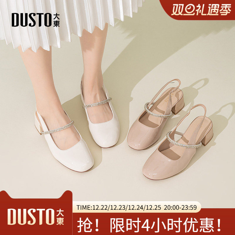 大东包头凉鞋女鞋2025新款水钻粗跟单鞋后空玛丽珍法式女鞋X1037