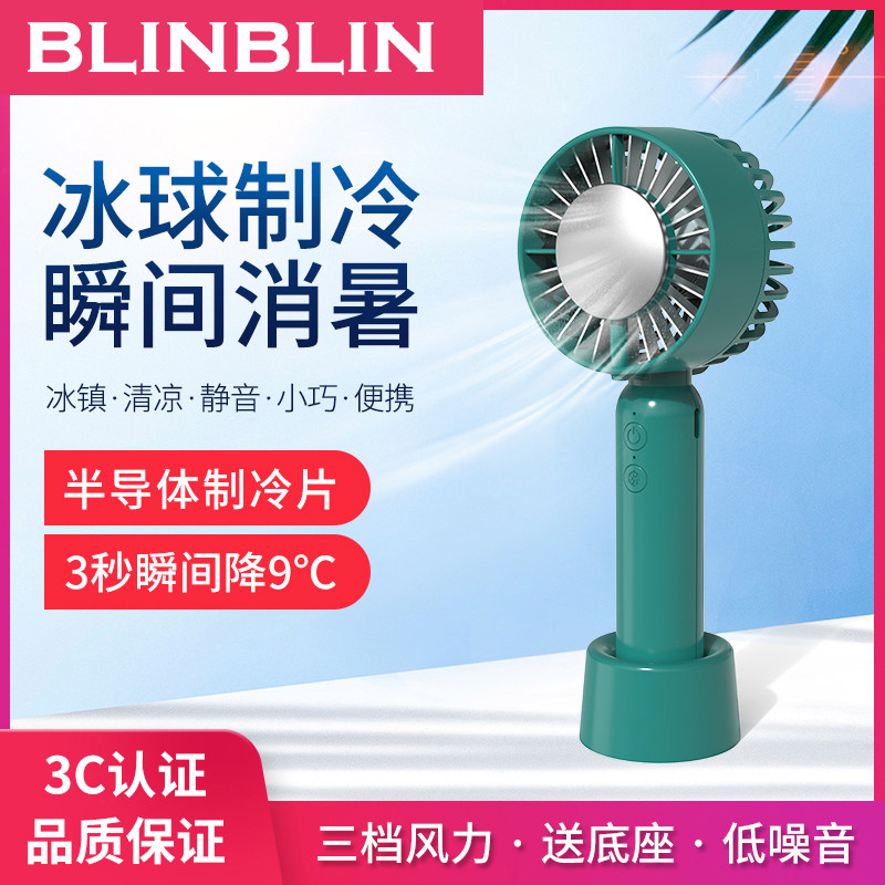 BLINLBIN半导体制冷小风扇冰球制冷手持USB充电2000毫安风扇三挡风速调节手持桌面一体小风扇户外便携A8风扇