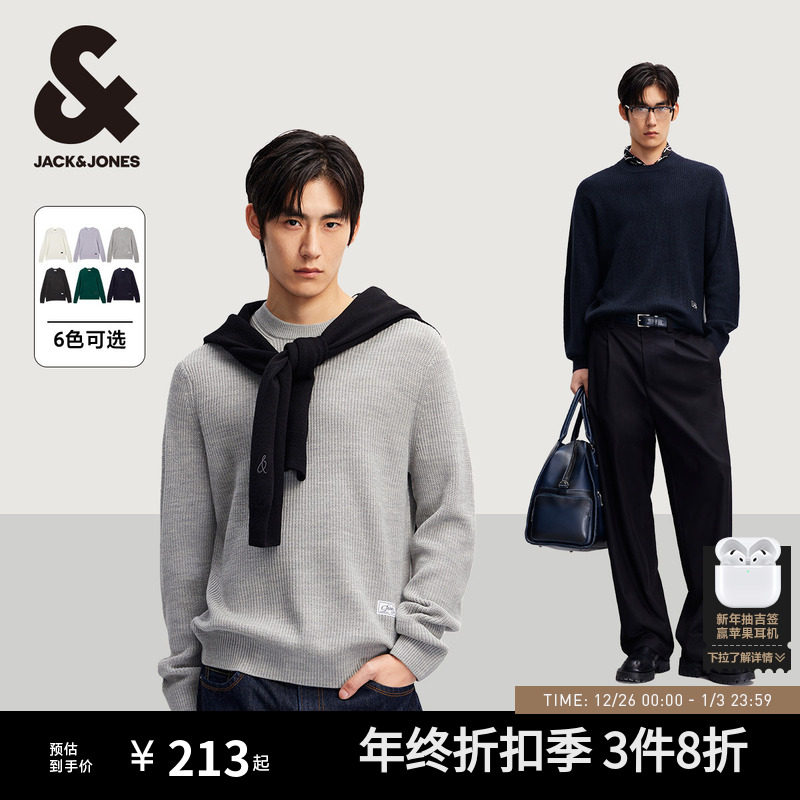 杰克琼斯25年新款男装可机洗百搭简约含绵羊毛打底针织衫