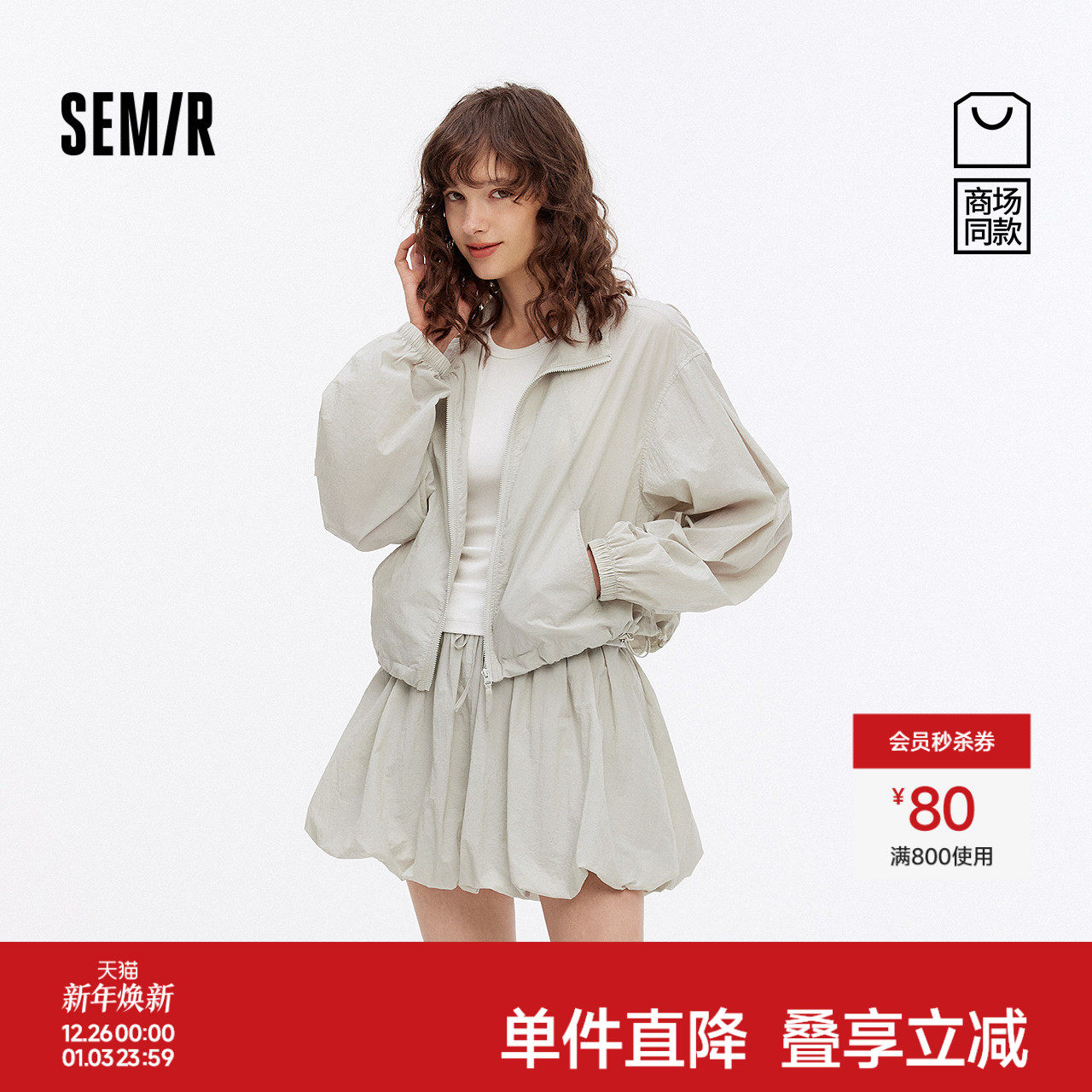[商场同款]森马套装女轻薄短外套花苞短裙2025新款秋季肌理两件套