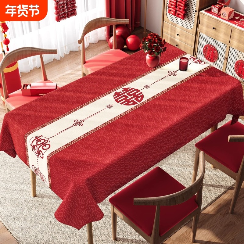 红色结婚桌布免洗防油防水餐桌桌布2025新款喜庆茶几台布订婚盖布