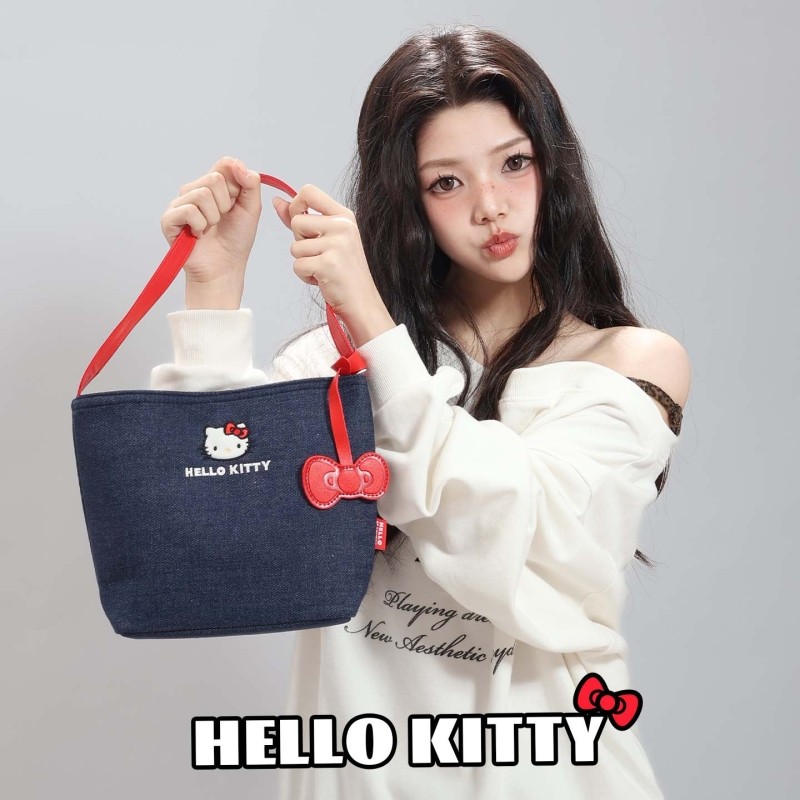 三丽鸥正版授权牛仔手提包女可爱卡通刺绣小包撞色单肩包百搭收纳