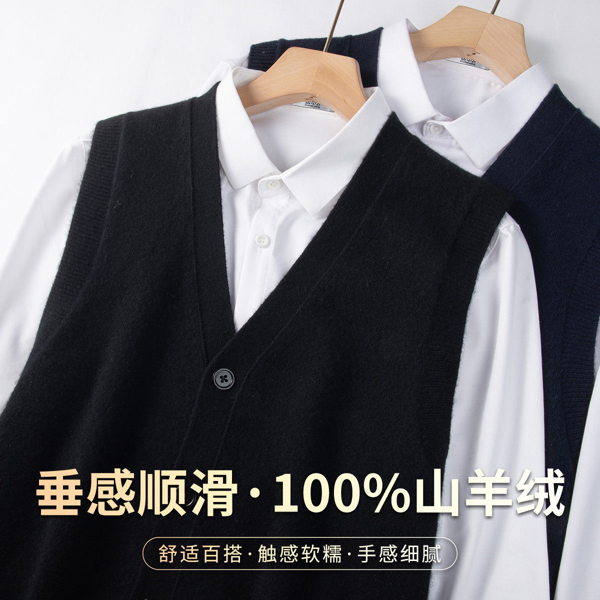雪中飞【100%山羊绒】轻奢老钱风男士马甲简约百搭叠穿背心羊绒衫